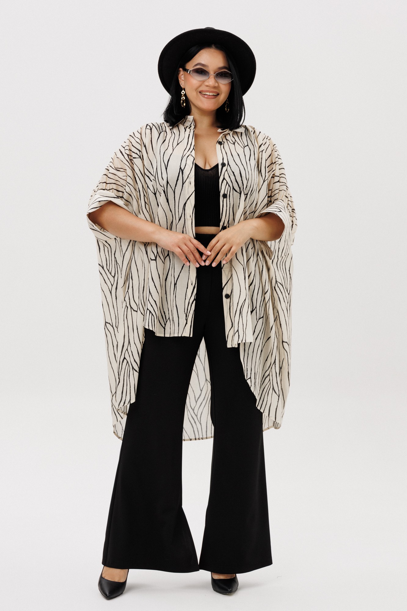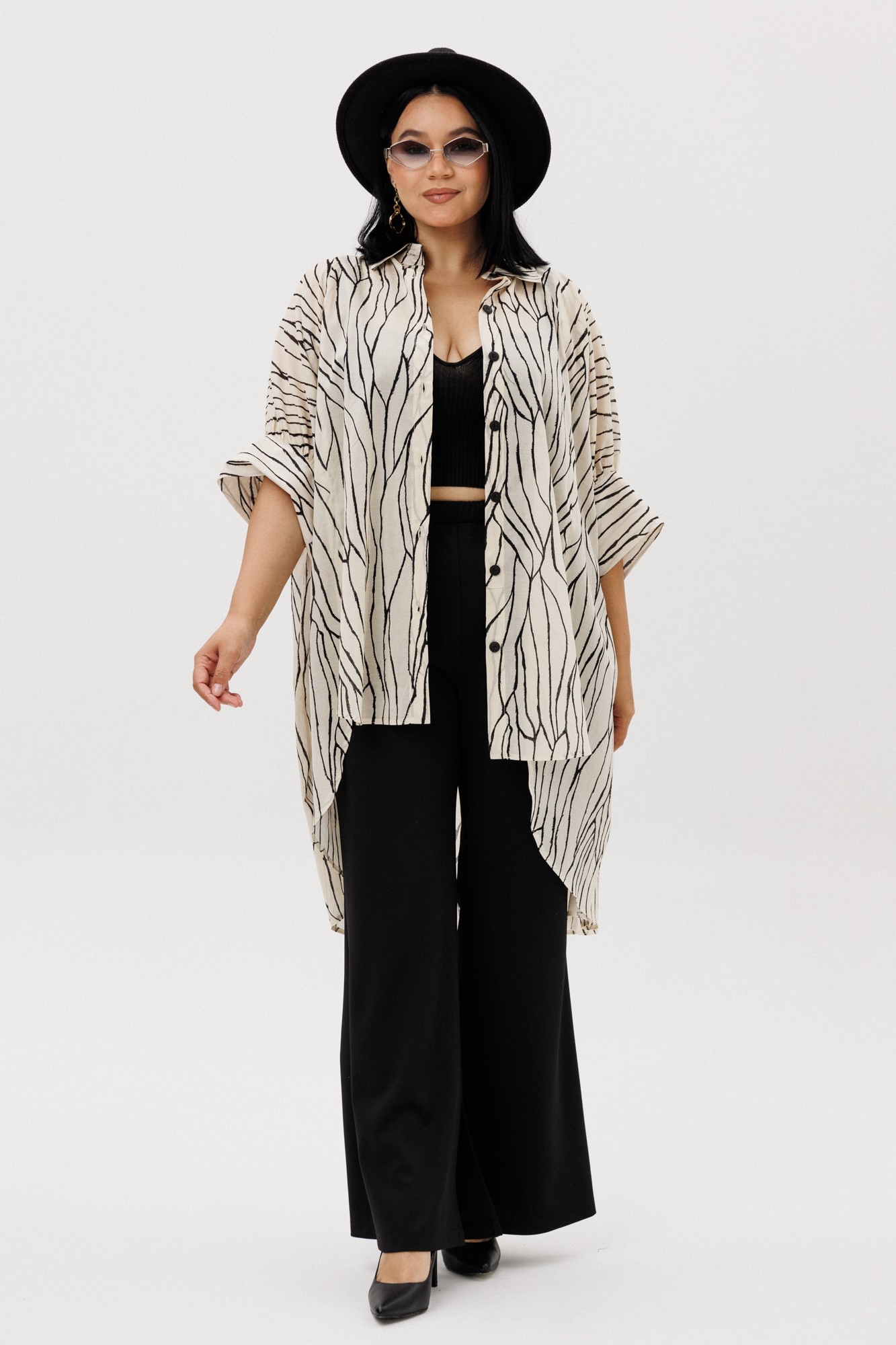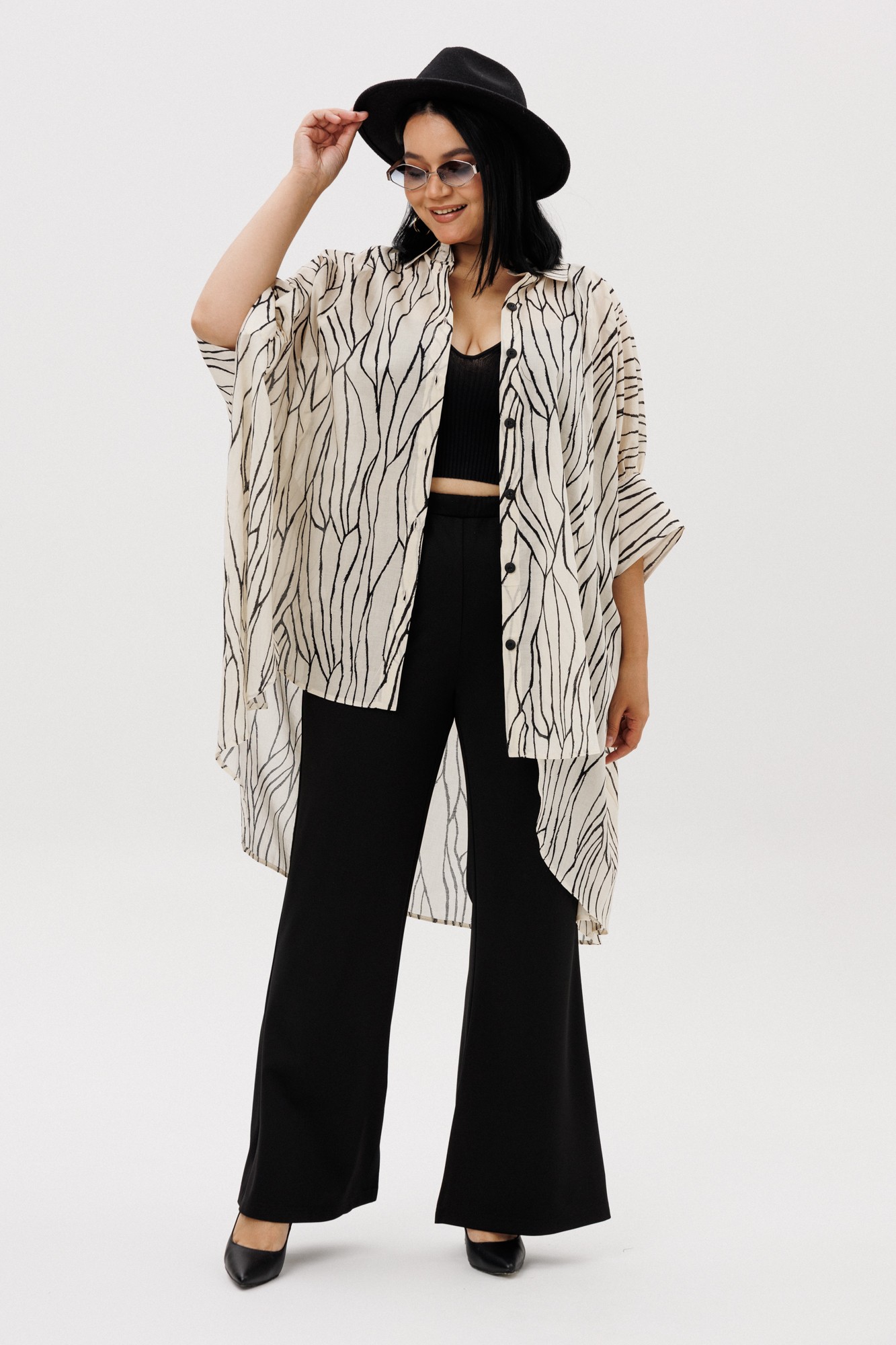 Стильный и изысканный женский комплект от бренда Anastasia, состоящий из блузки и брюк, идеальный для любого случая. Он станет отличным вариантом для торжественных мероприятий таких как: поход в ресторан, выставки, корпоратив. Этот комплект сочетает в себе элегантность и комфорт, что делает его подходящим как для деловых встреч или праздничных выходов. Оригинальная женская блузка из хлопковой ткани типа поплина. Легкая и практически невесомая. Модель onesize. Брюки -клеш, пояс на резинке. По внутреннему срезу по низу идут разрезы. Отдельный части комплекта легко будут сочетаться с вещами из Вашего гардероба. Модель можно отнести к стилю кэжуал. Костюм можно носить с туфлями, кроссовками или ботинками. Обязательно добавьте наш бренд в избранное и следите за новинками, распродажами, скидками и акциями! Хороших покупок от «Анастасия».