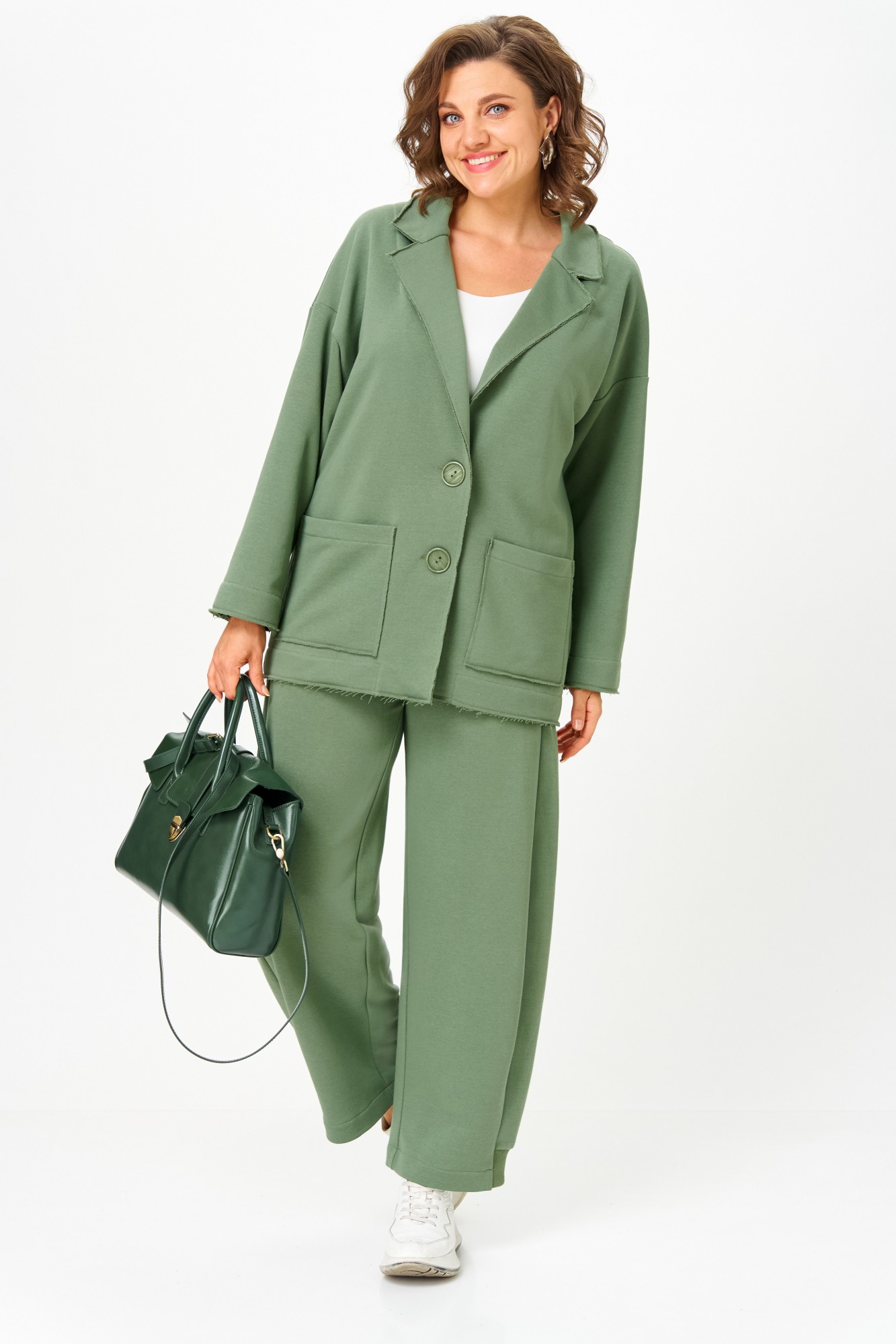 Костюм женский кэжуал (casual) из трикотажного материала трехнитка свободного кроя, который создает расслабленный силуэт -это отличный выбор для активных и стильных девушек и женщин, которые ценят моду и комфорт! Жакет со спущенным плечом. Воротник пиджачного типа, по полочке идут накладные карманы. Жакет без подкладки, мягкий и легкий. Края борта воротника, низов и карманов не обработаны. Застежка на петли и пуговицы. Выполнен в крое Oversize свободной формы и посадкой по фигуре. Если хотите силуэтную посадку, выбирайте на размер меньше. Если хотите посадку свободнее - заказывайте свой размер. Стильный и трендовый жакет подойдет для высоких и невысоких женщин. Брюки в корейском стиле со вставками по бокам (по низу довяз). В передней части по бокам карманы. По спинке кокетка , переходящая в карманы. Пояс на резинке. Подходит на любой тип фигуры - свободный крой и размерный ряд.Ткань не мнется — удобно в дороге: в самолете, поезде или автомобиле. Носите как комплект или отдельно - легко вписывается в гардероб.