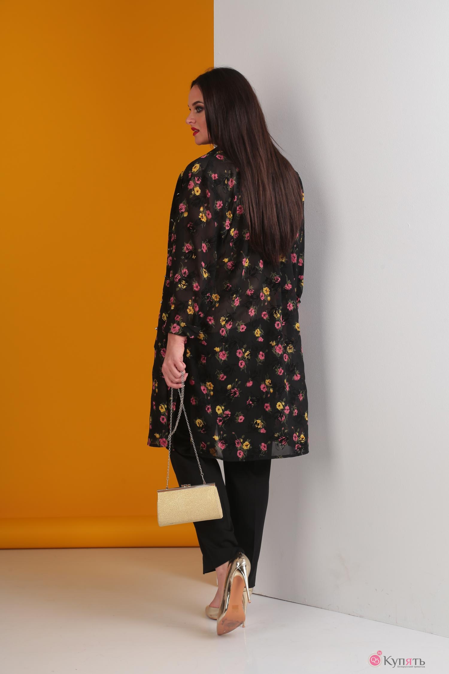Брючный костюм Anastasia Mak 546 с розовыми цветами