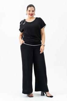 Костюм женский для любого мероприятия. Блузка женская как для праздников так и для любого повода, , покроя "летучая мышь" , со стойкой на которую настрочена завязка с декоративными кисточками из бахромы, со швом по центру полочки, рукава цельнокроеные, застёгивающиеся на петлю и пуговицу. Низ блузки по спинке длиннее, по полочке короче. Брюки женские, на притачном поясе по полочке и с резинкой по спинке. Брюки с боковыми наклонными карманами.