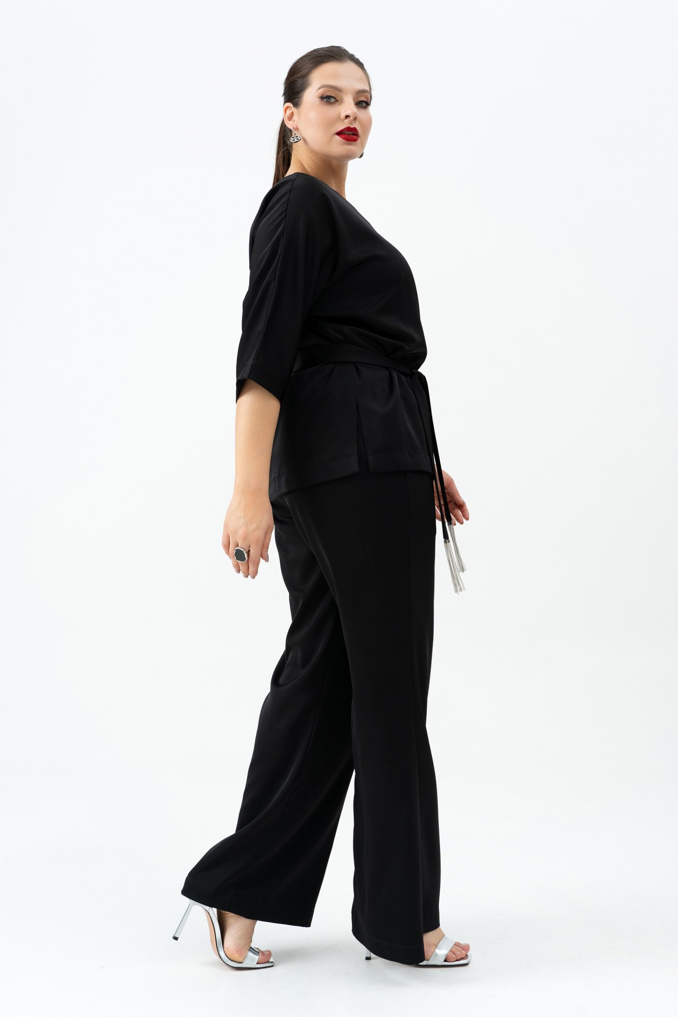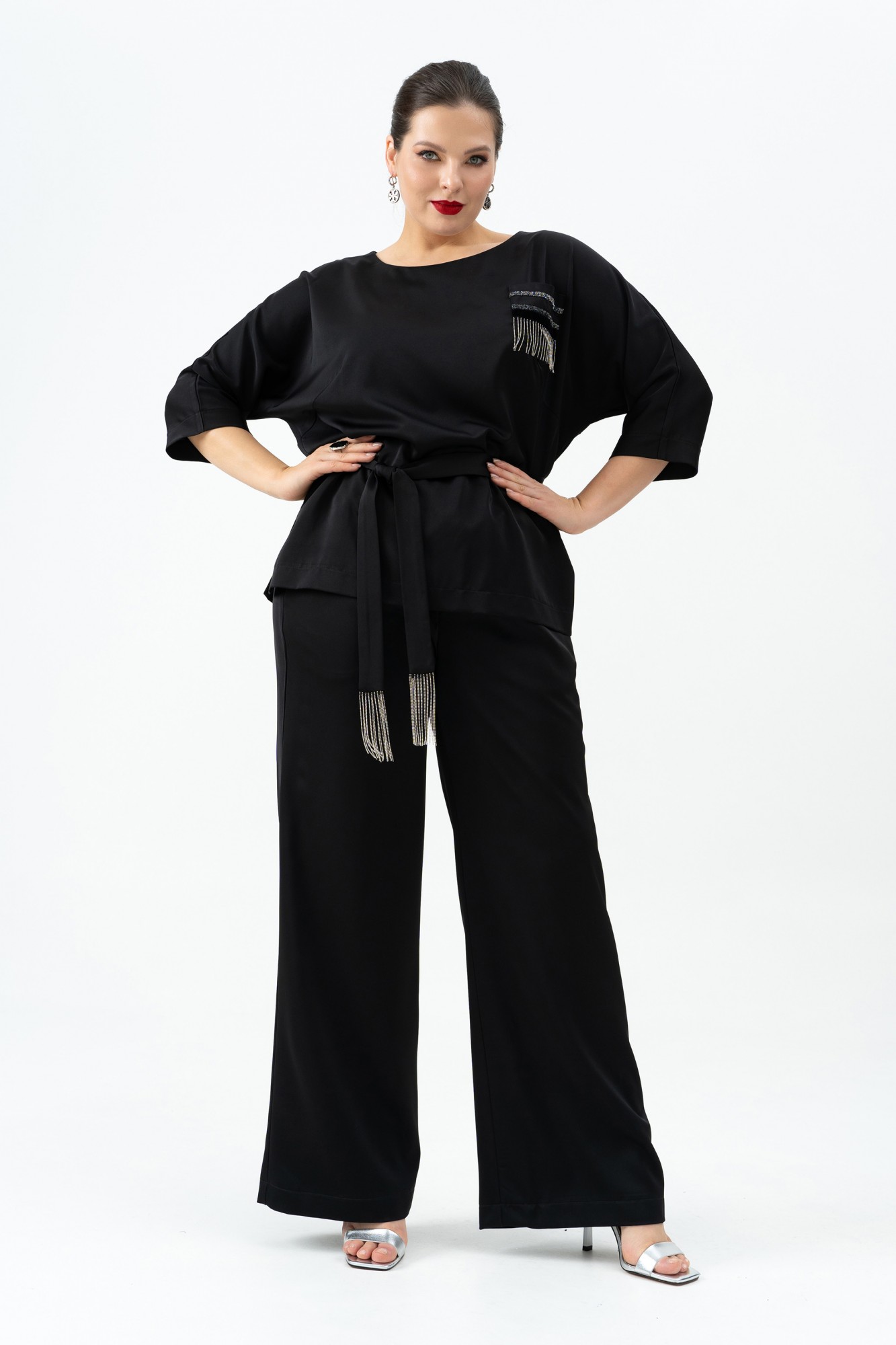 Костюм женский брючный классика для любого мероприятия. Туника прямого силуэта, с нагрудными вытачками, с декоративным карманом, с боковыми разрезами. Брюки женские прямого кроя, на притачном поясе по переду и с пояс с резинкой по спинке. Передние половинки с карманами в швах.