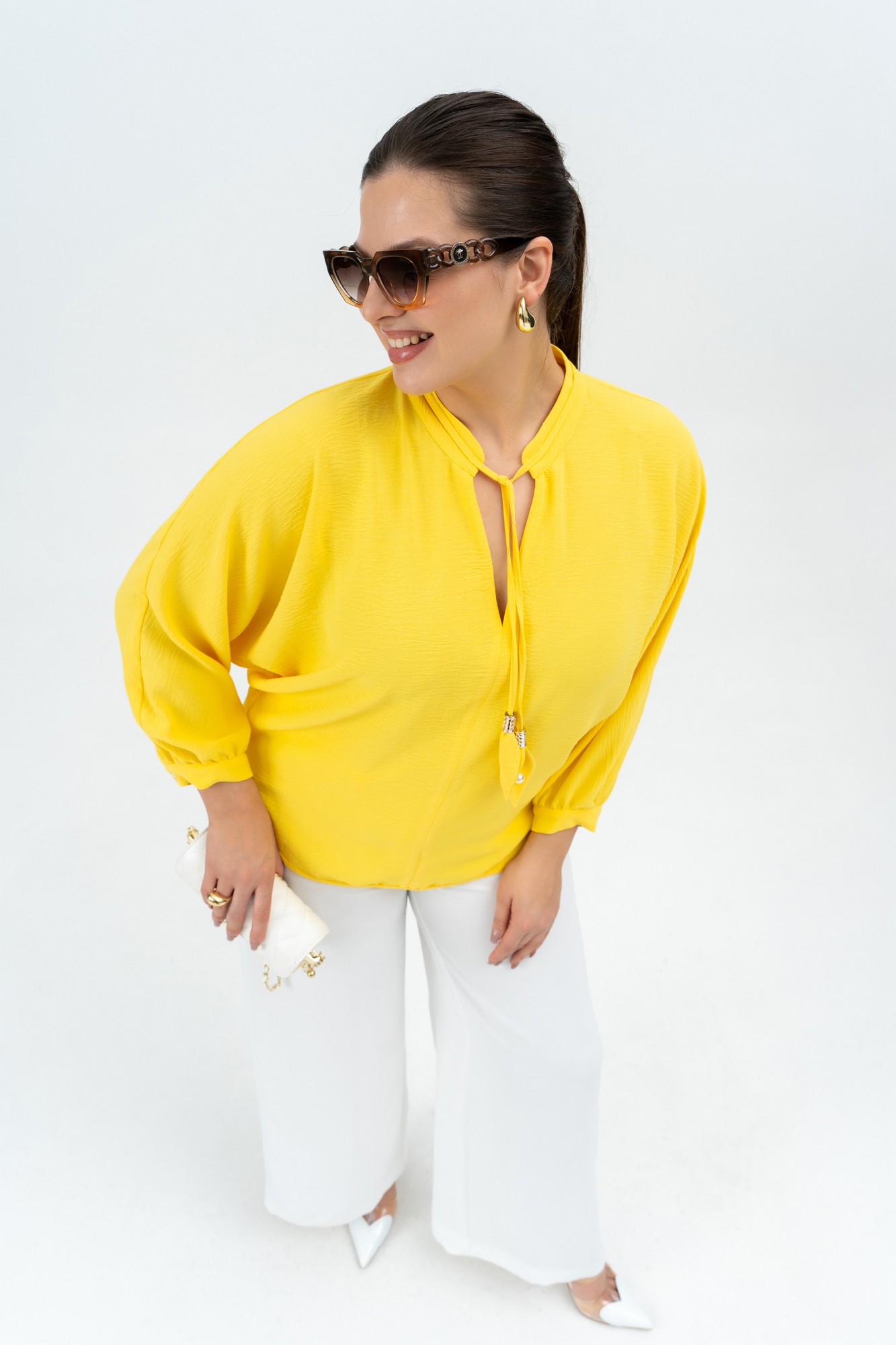 Брючный костюм ANDINA 968 двойка желтый, молоко