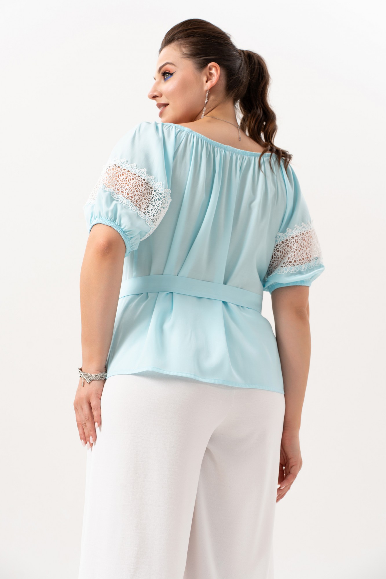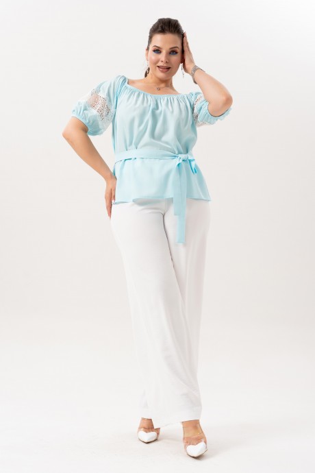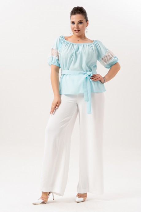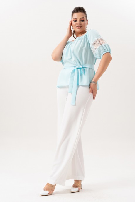 Брючный костюм ANDINA 982 небесно-голубой, молоко