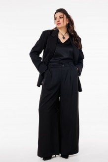 Жакет с архитектурным кроем, принтованной подкладкой и функциональными деталями, такими как карманы с клапаном, добавляет ему изысканности и практичности. Брюки-палаццо с высокой посадкой, мягкими складками и боковыми карманами создают элегантный и комфортный силуэт, который подчеркивает фигуру и подходит для разных сезонов.