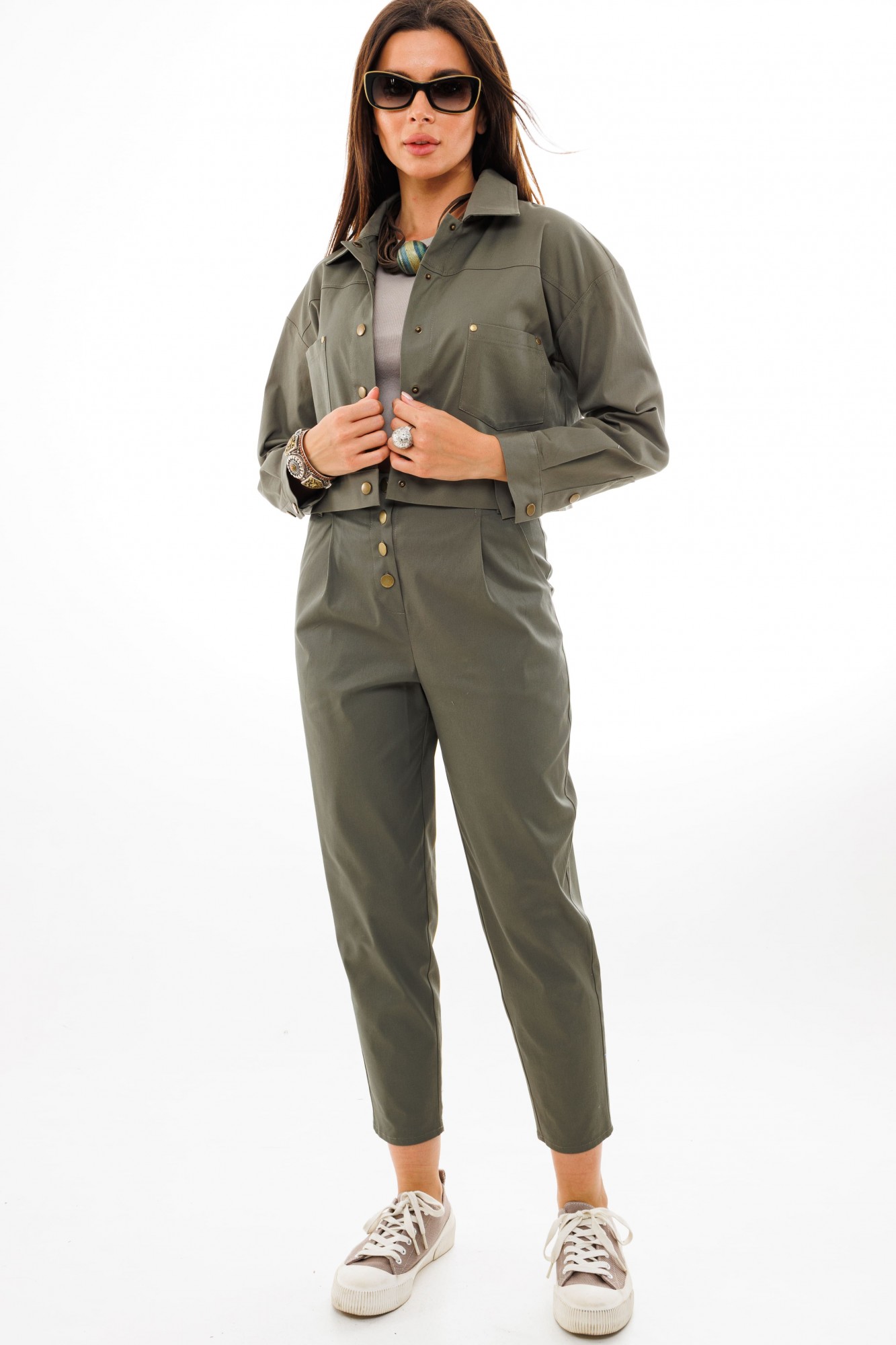 Брючный костюм Anelli 1300 двойка оливковый