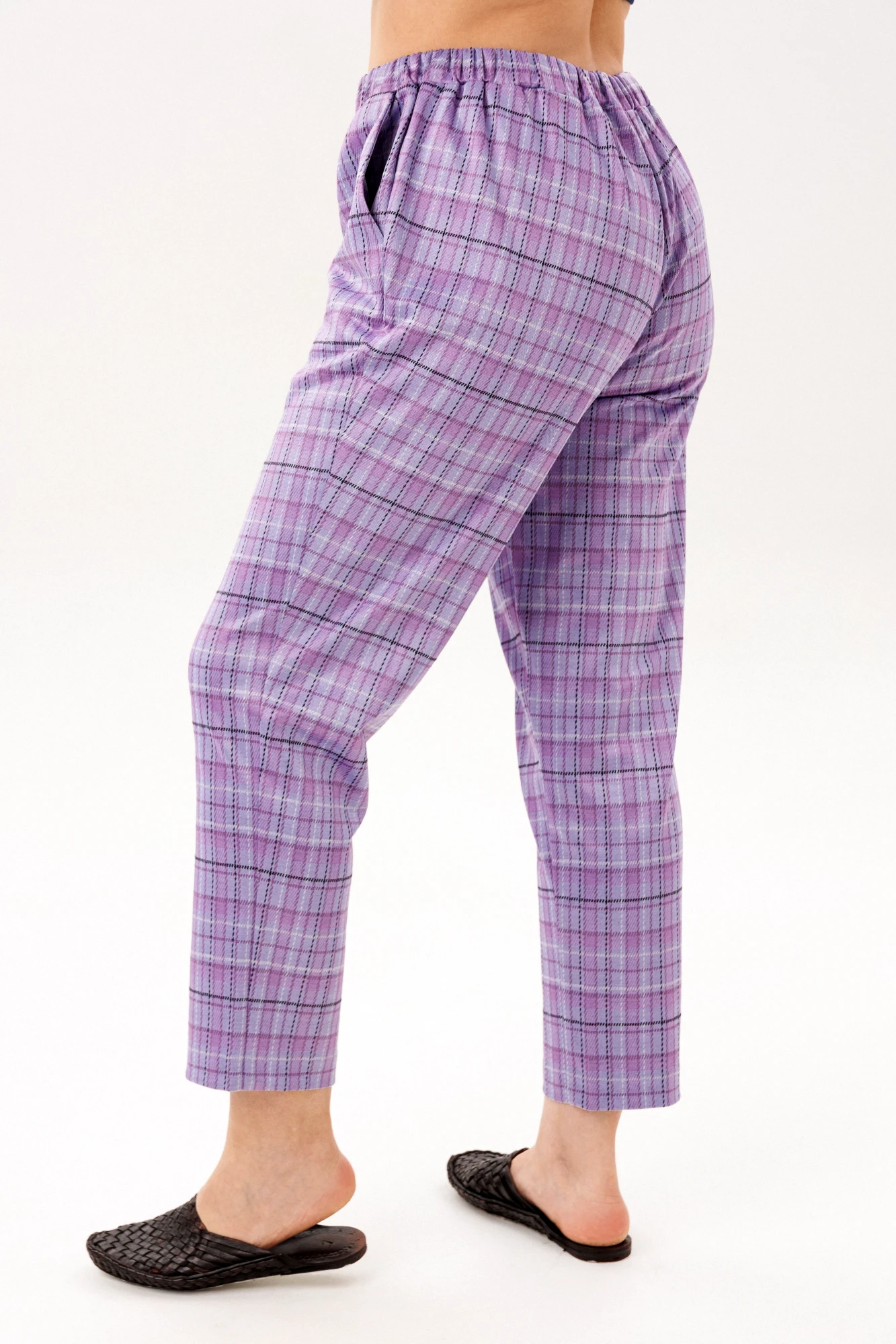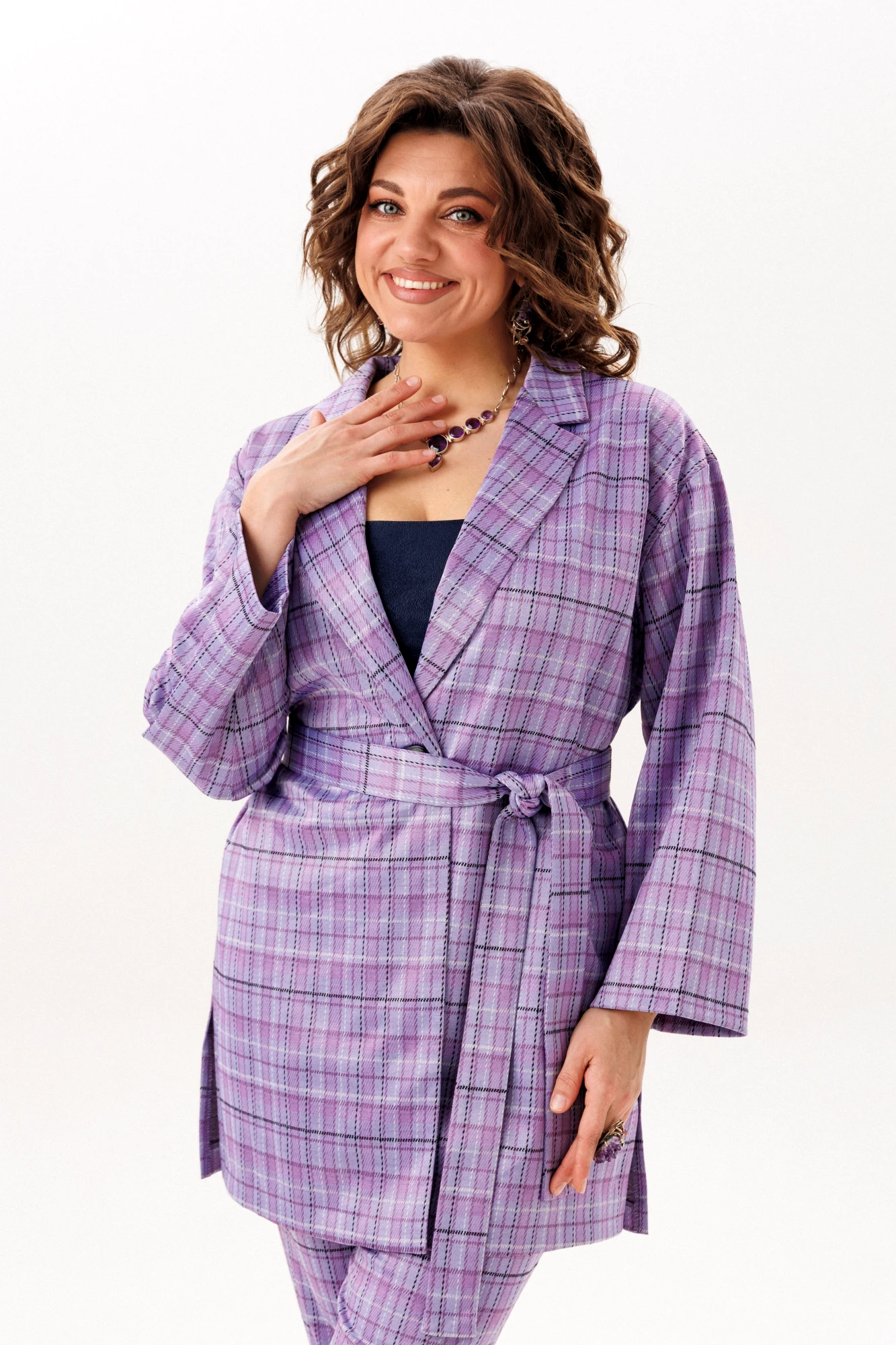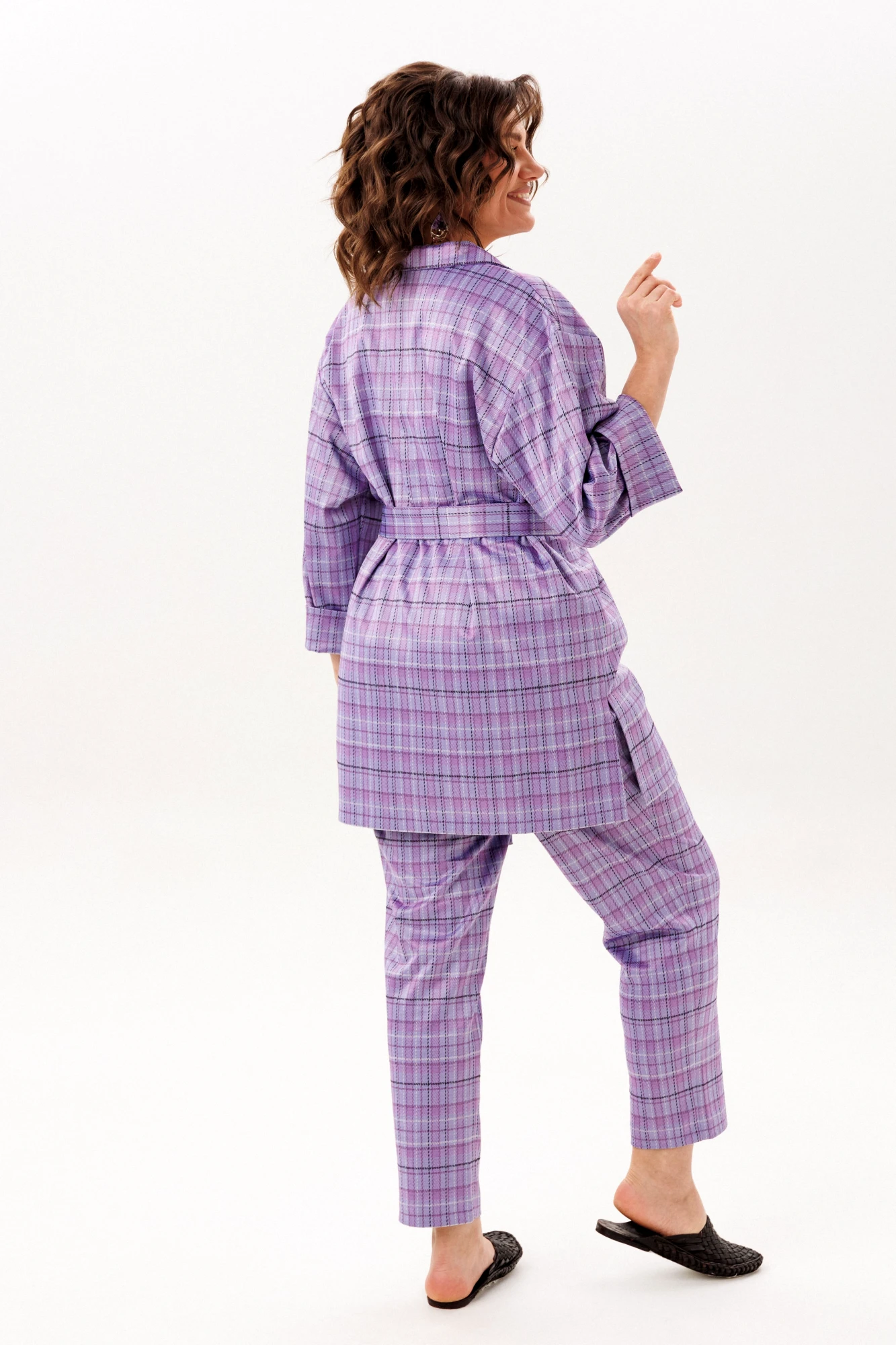Костюм из утеплённого трикотажного полотна, выполненный в цвете «лавандовая история» с классическим клетчатым принтом. Этот актуальный предмет гардероба обладает вневременной притягательностью, оставаясь стильным независимо от сменяющихся тенденций.