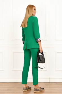 Комплект брючный женский, классический, состоит из жакета и брюк. Жакет полуприлегающего силуэта с втачным рукавом, 2-бортный, воротник с лацканом, спереди два прорезных кармана. По спинке шлица, изделие на подкладке с дизайном(может меняться дизайн). Брюки 7/8 длины ,зауженные книзу, с боковыми карманами, на поясе, спереди застегивается на молнию и потайные пуговицы.