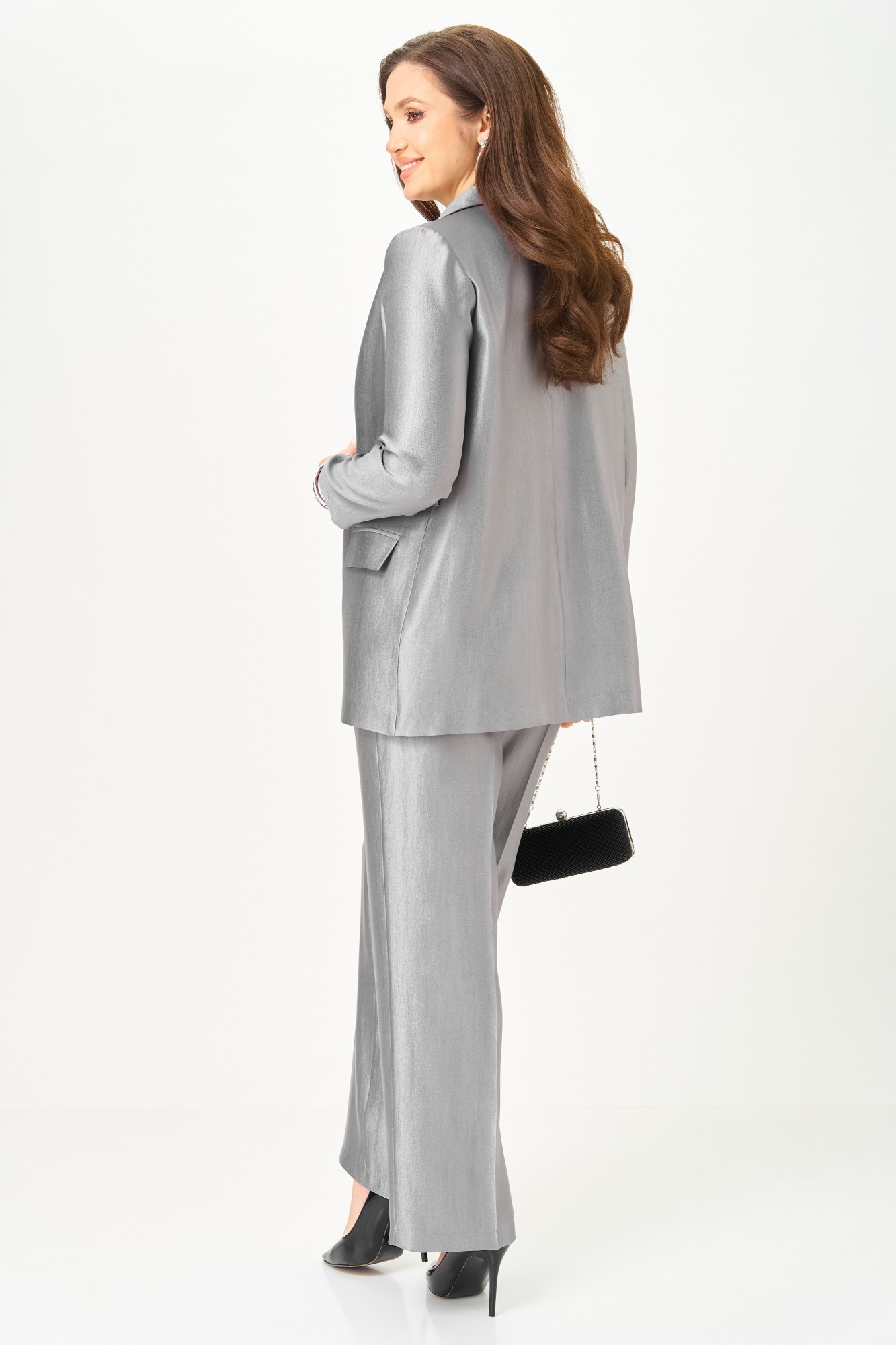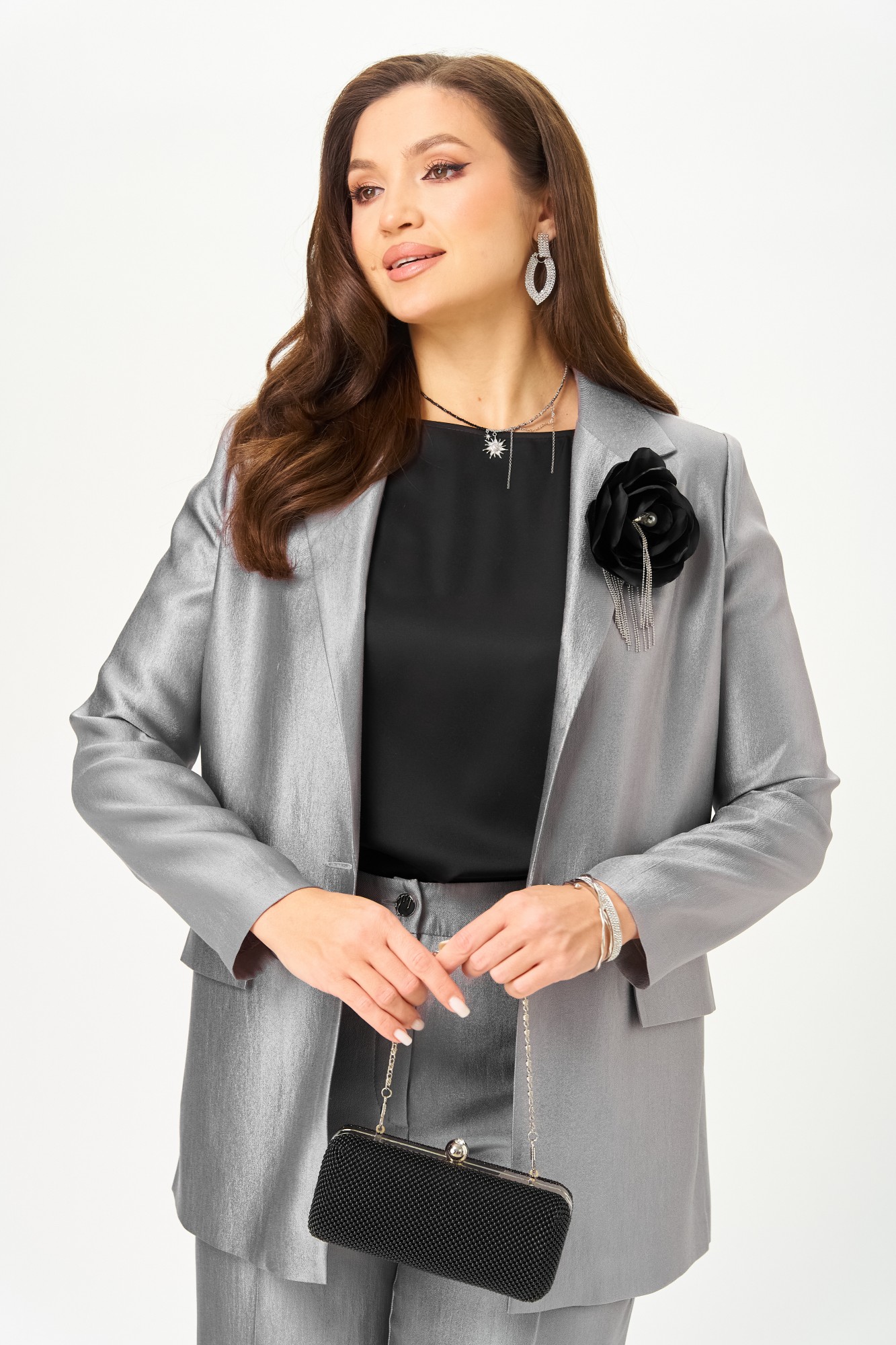Женский трехпредметный комплект состоит из жакета и брюк , выполненных из плательно-костюмной ткани "Люмина" и блузы, выполненной из блузочной ткани шёлк, "Армани".