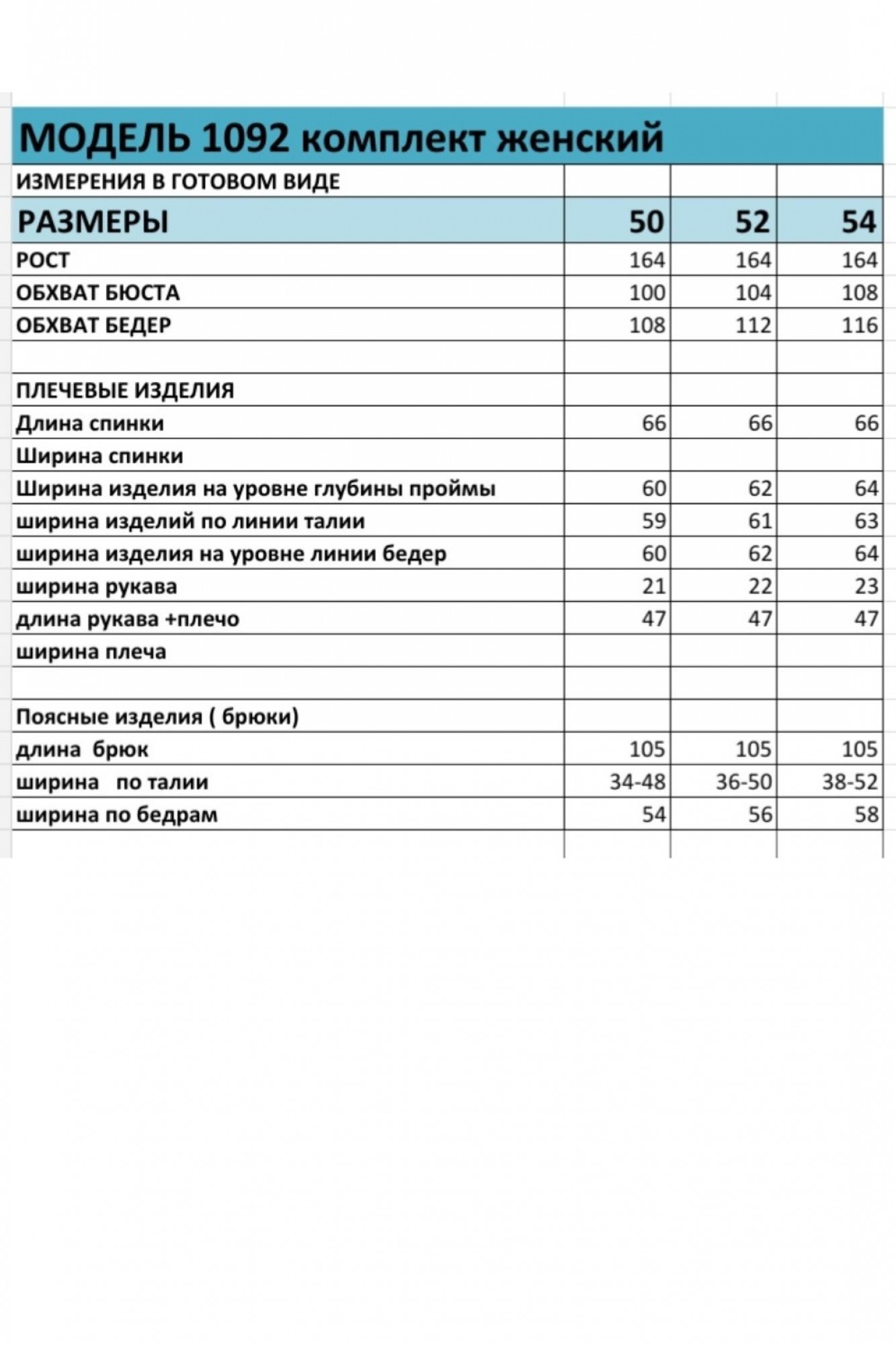 Таблица размеров