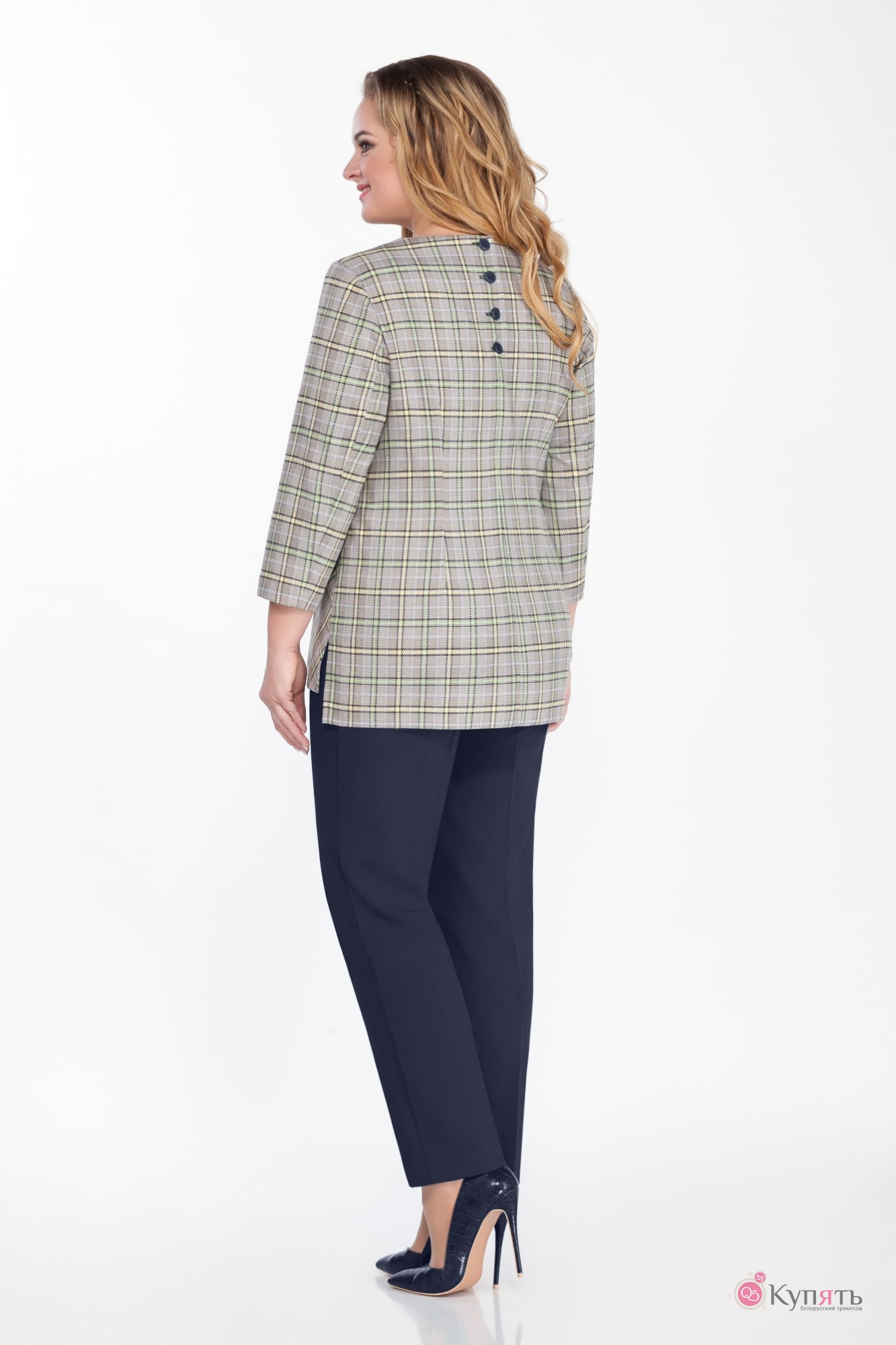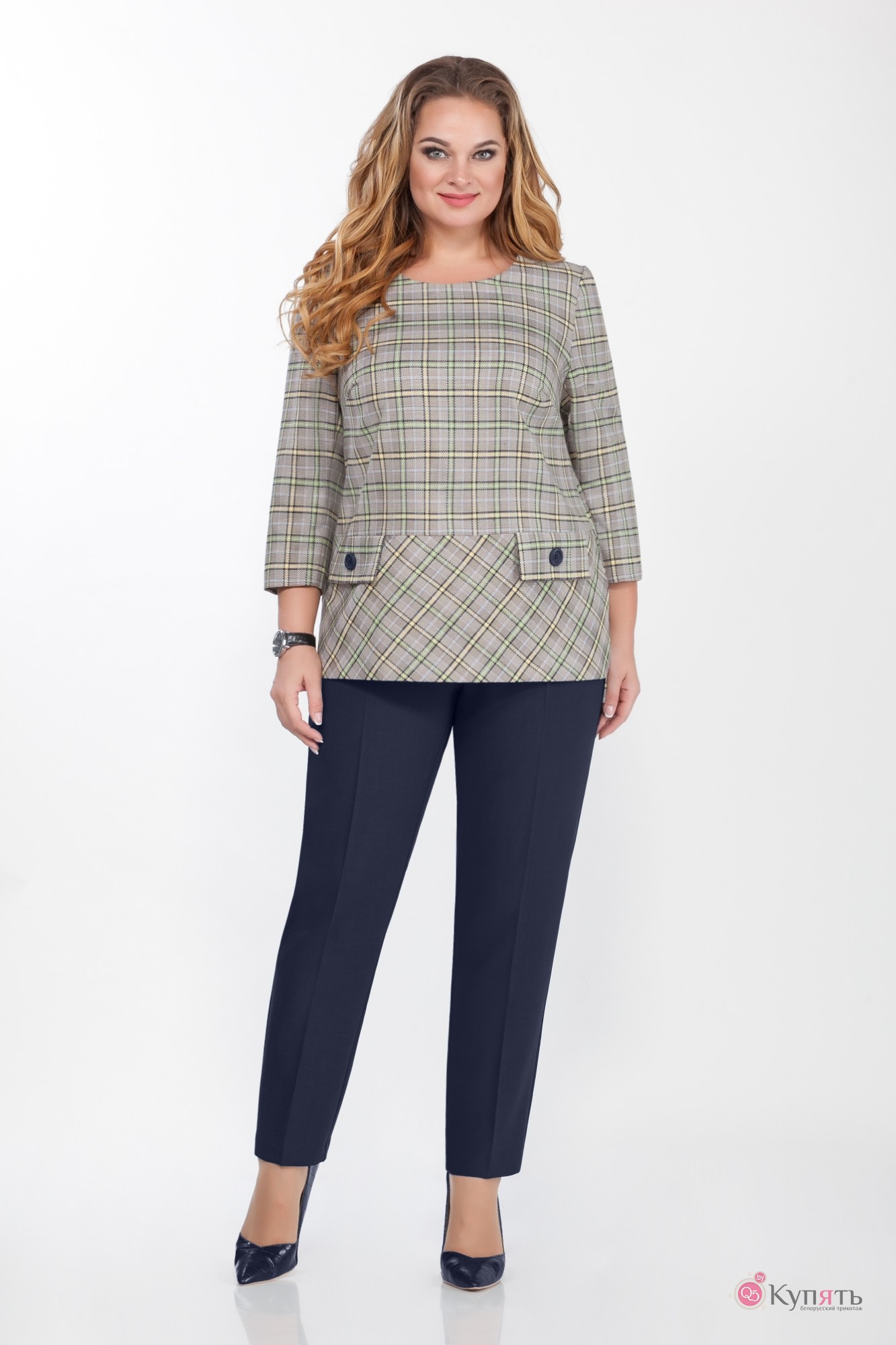 Комплект женский двухпредметный состоящий из блузы и брюк полуприлегающего силуэта. Блуза выполнена из текстиля в клетку. Рукав втачной двухшовный.