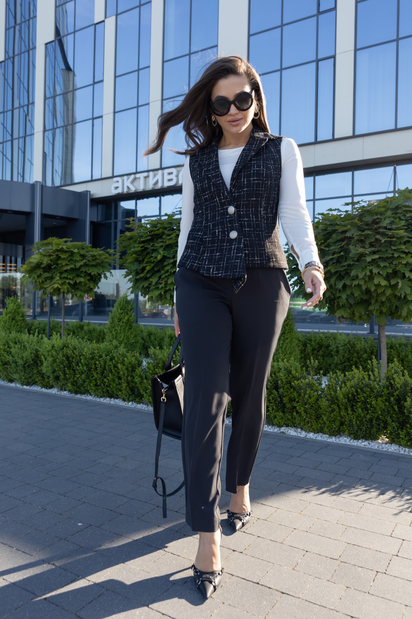 Брючный костюм Beautiful&Free 6049 тройка черный, белый с ID товара 367359