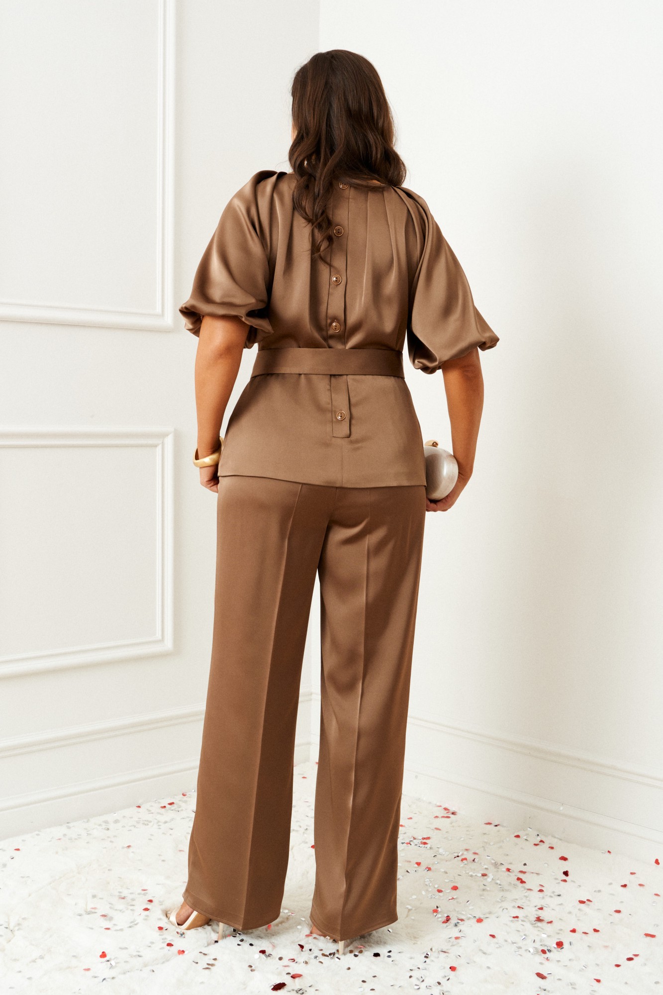 Брюки выполнены из шелковистого атласного полотна. Ткань легко драпируется и очень выгодно и дорого подчеркнёт ваш неповторимый образ.
