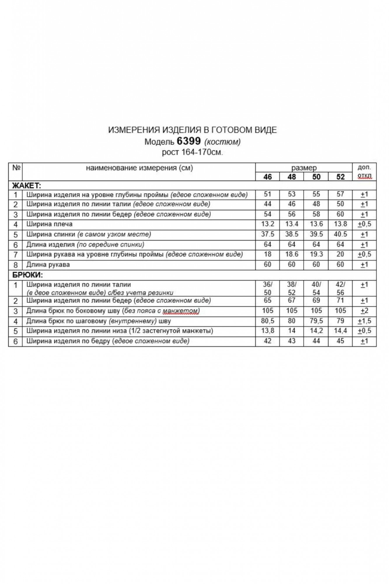 Костюм состоит из 2-х предметов одежды: жакета и брюк. Выполнен из атласной ткани стильного дизайна крэш.