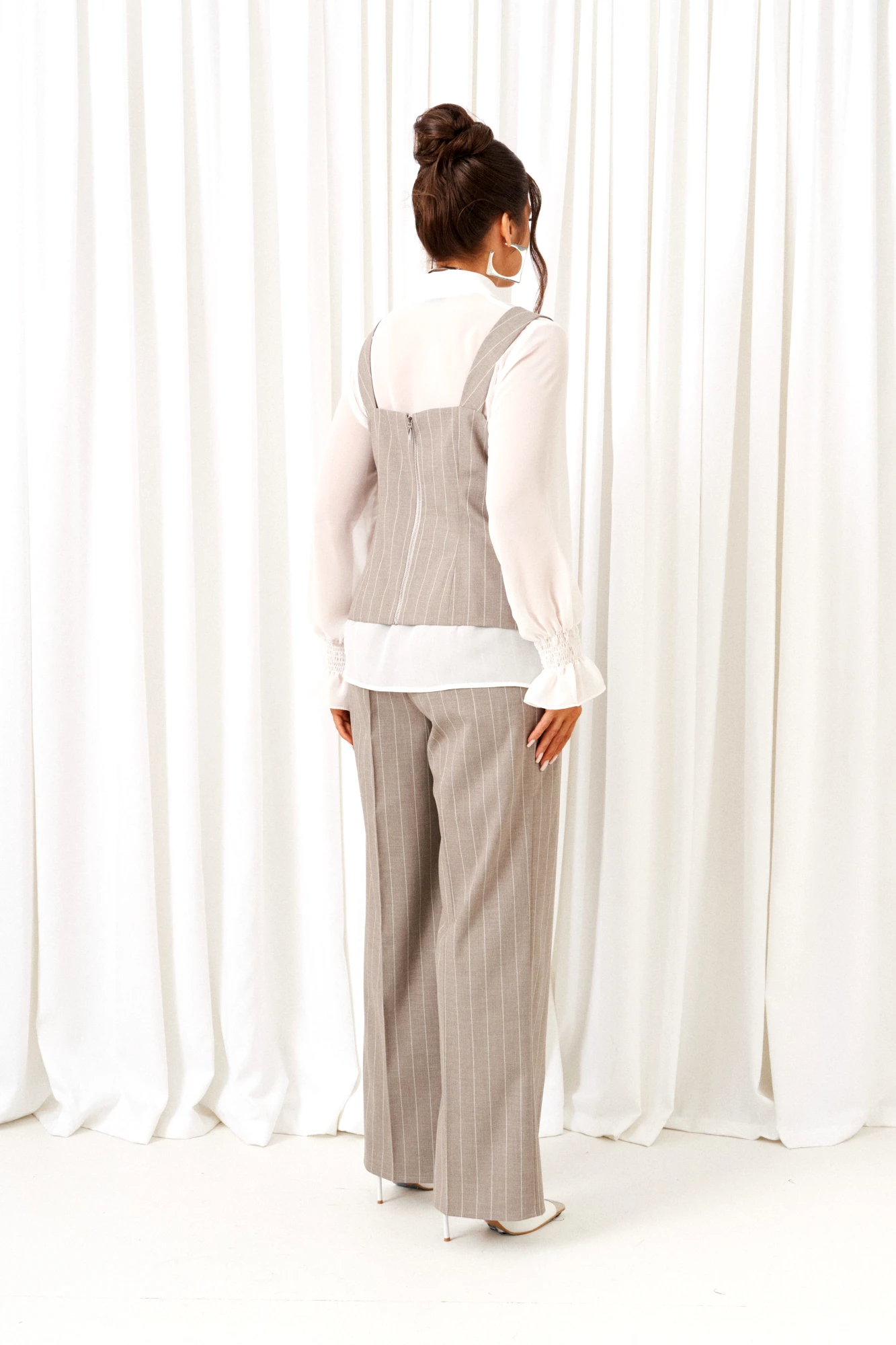 Брючный костюм Beautiful&Free 6417 тройка полоска песочная