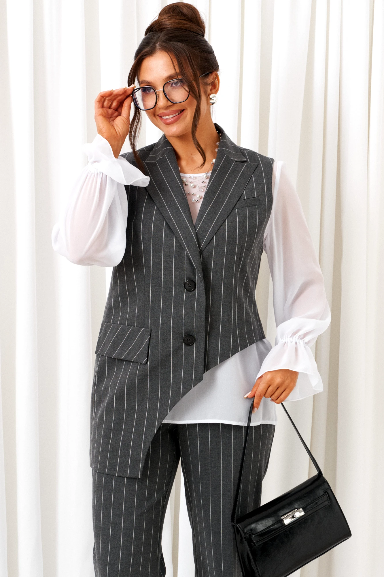 Брючный костюм Beautiful&Free 6422 тройка полоска серая