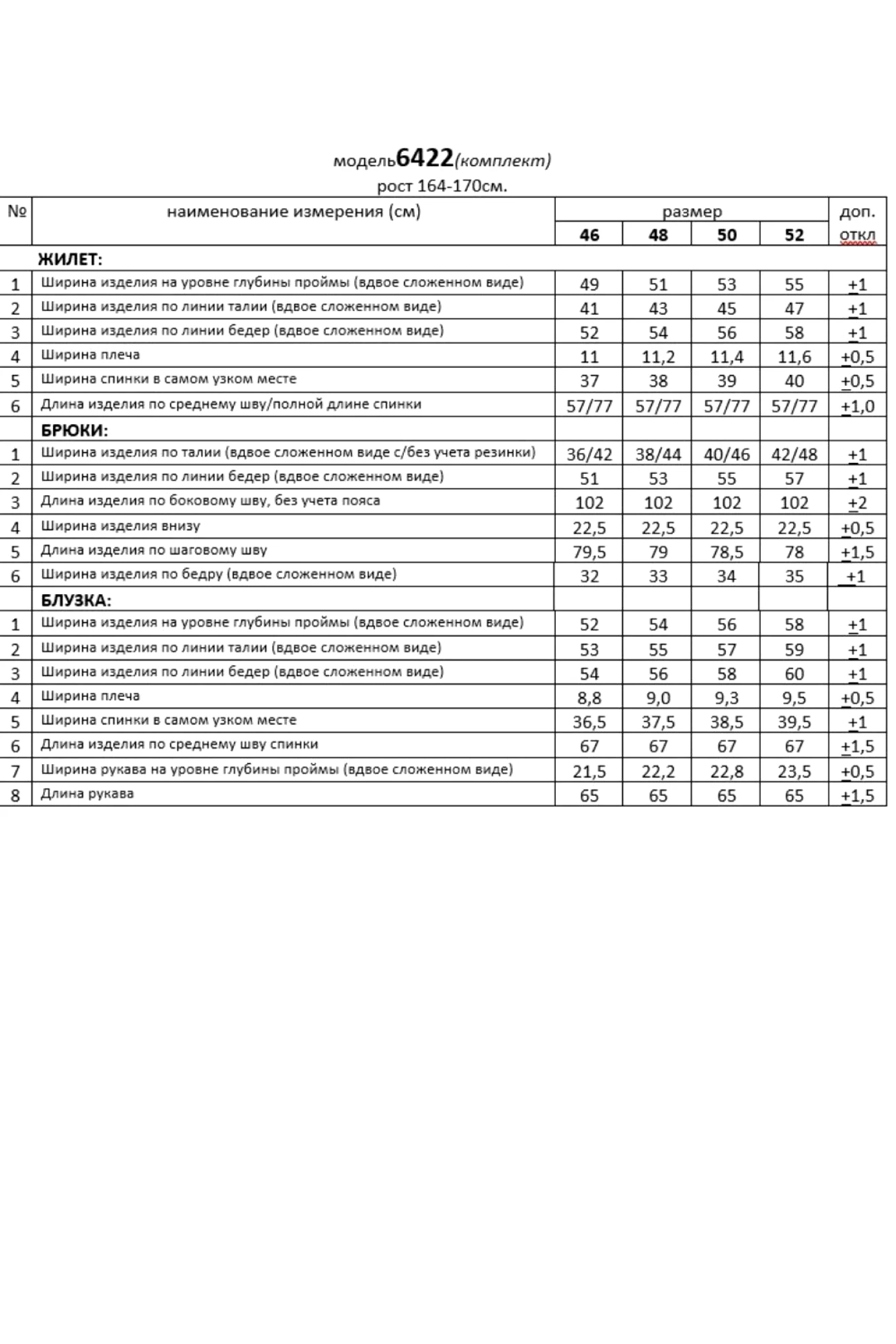 жакет, брюки - вискоза 61%, пэ 22%, пан 14%, эластан 3%, блузка – пэ 75%, вискоза 25%