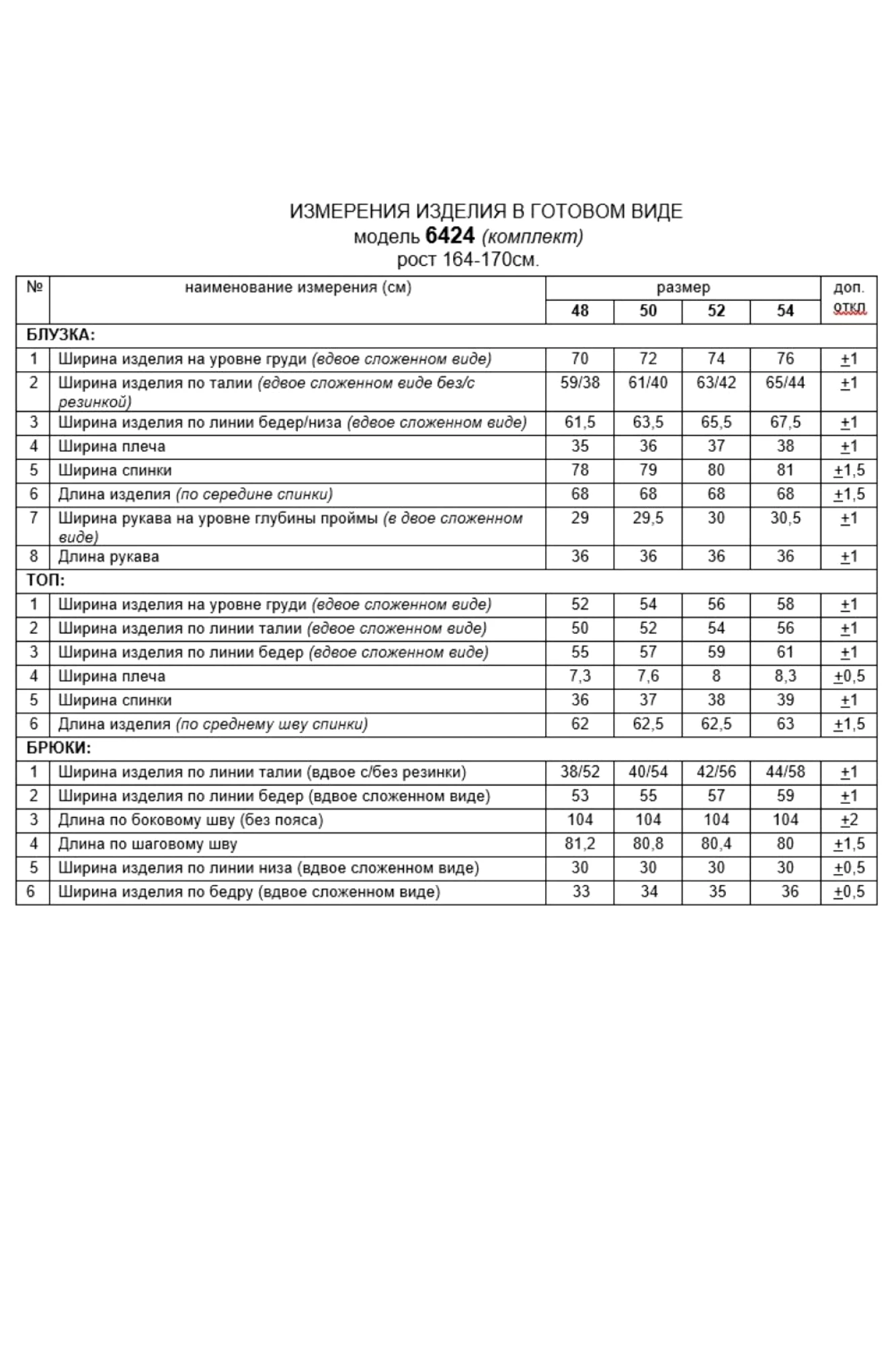 брюки, топ – вискоза 50%; пэ 50%; блузка – вискоза 50%; пэ 45%, нейлон 5%