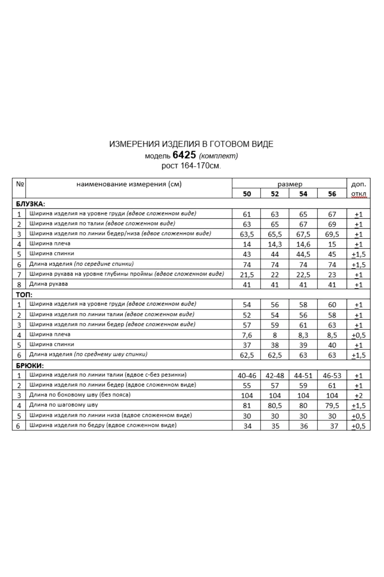 топ, брюки – вискоза 50%, пэ 50%, блузка –вискоза 50%, пэ 45%, нейлон 5%