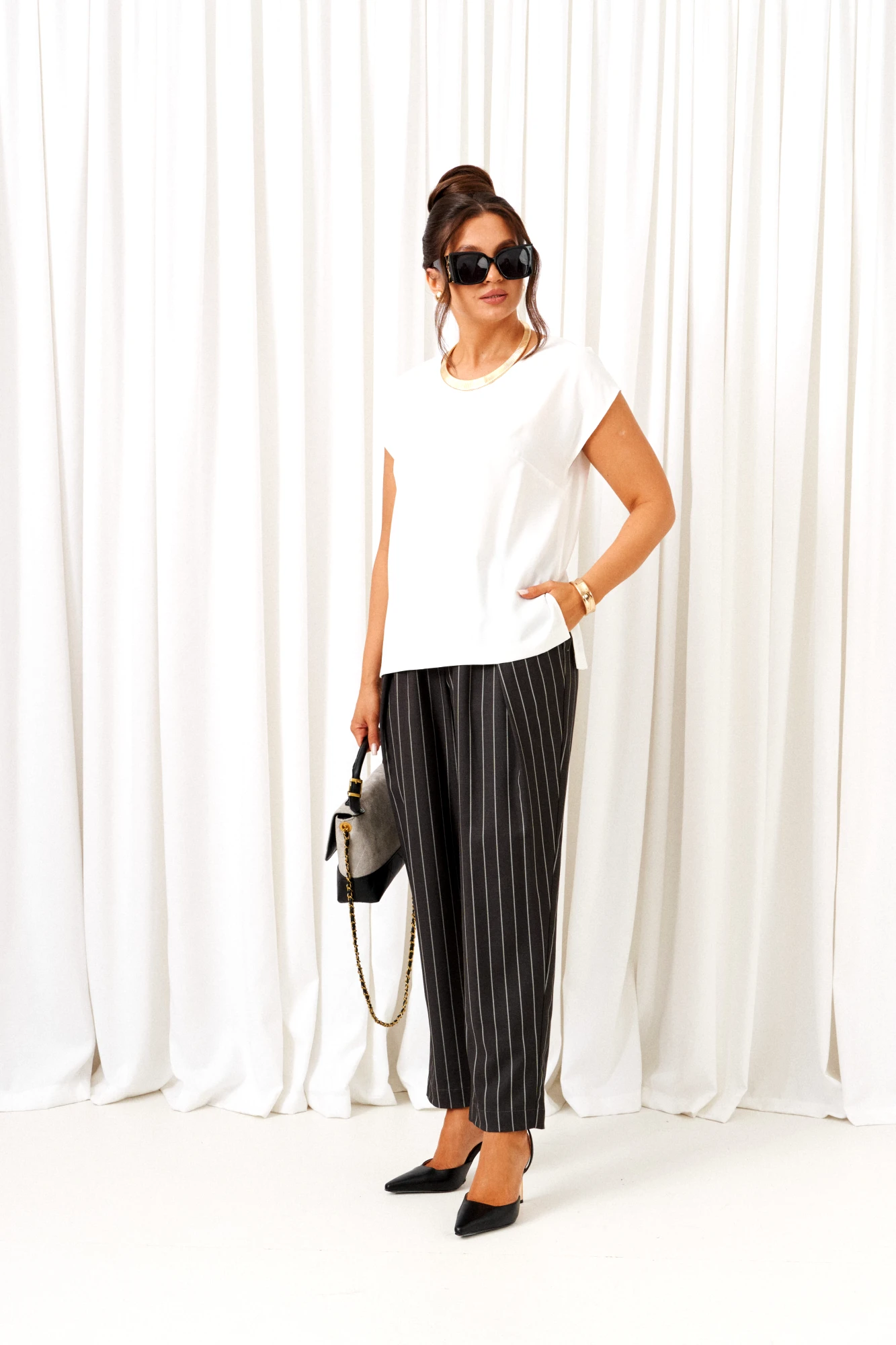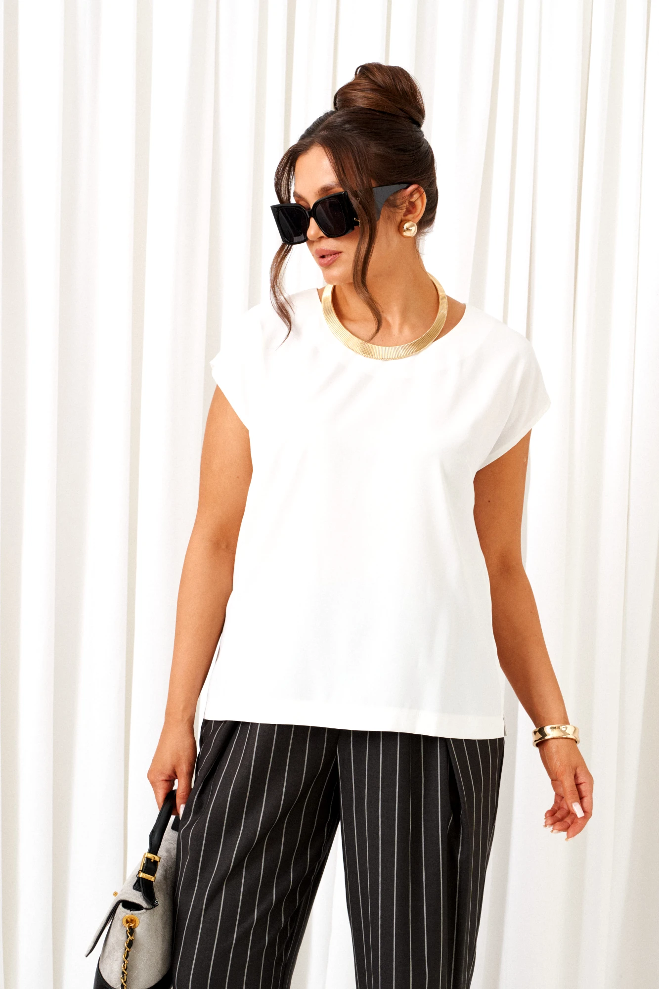 брюки, жилет – вискоза 64%, пэ 33%, спандекс 3%; блузка – пэ 68%, вискоза 27%, спандекс 5%