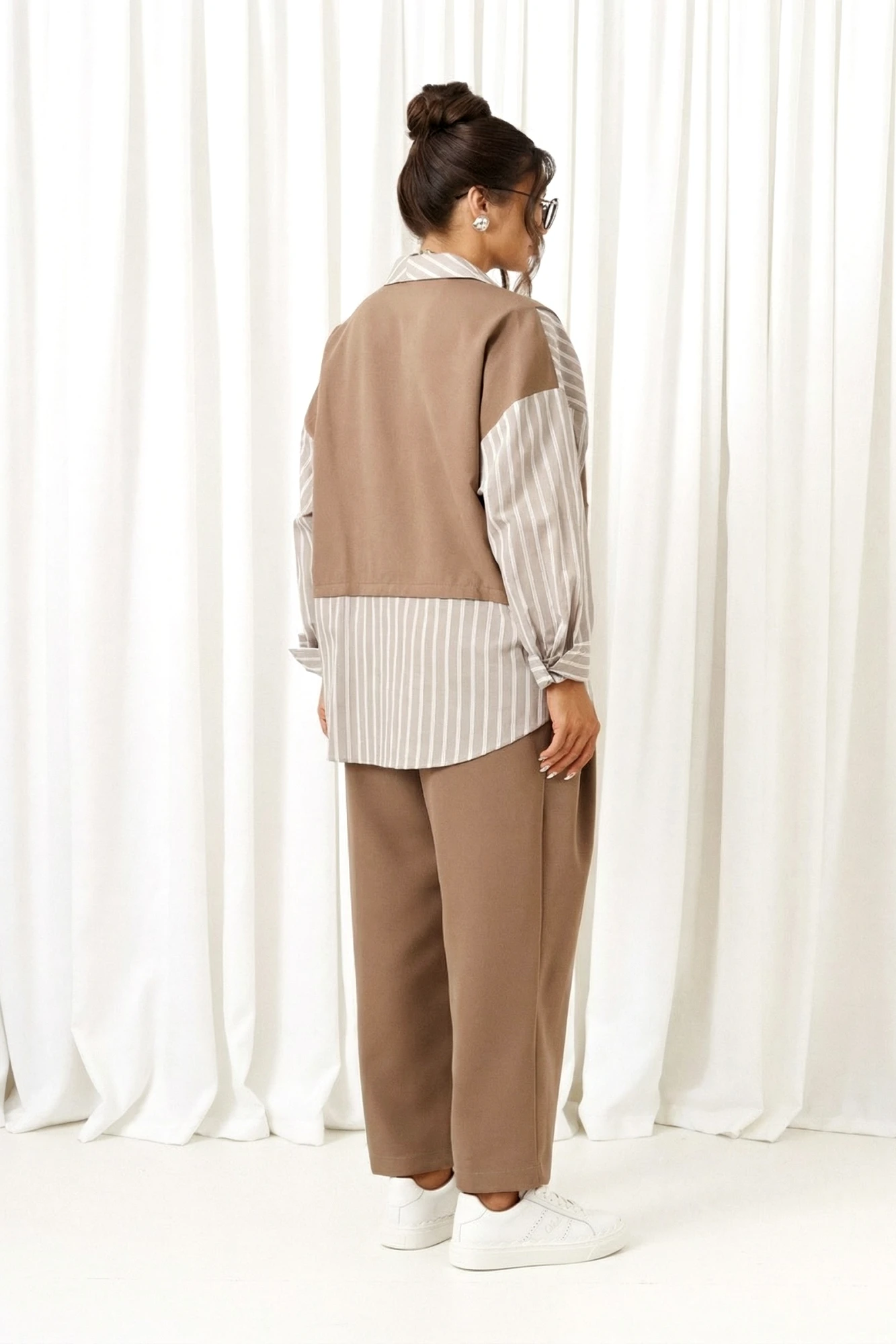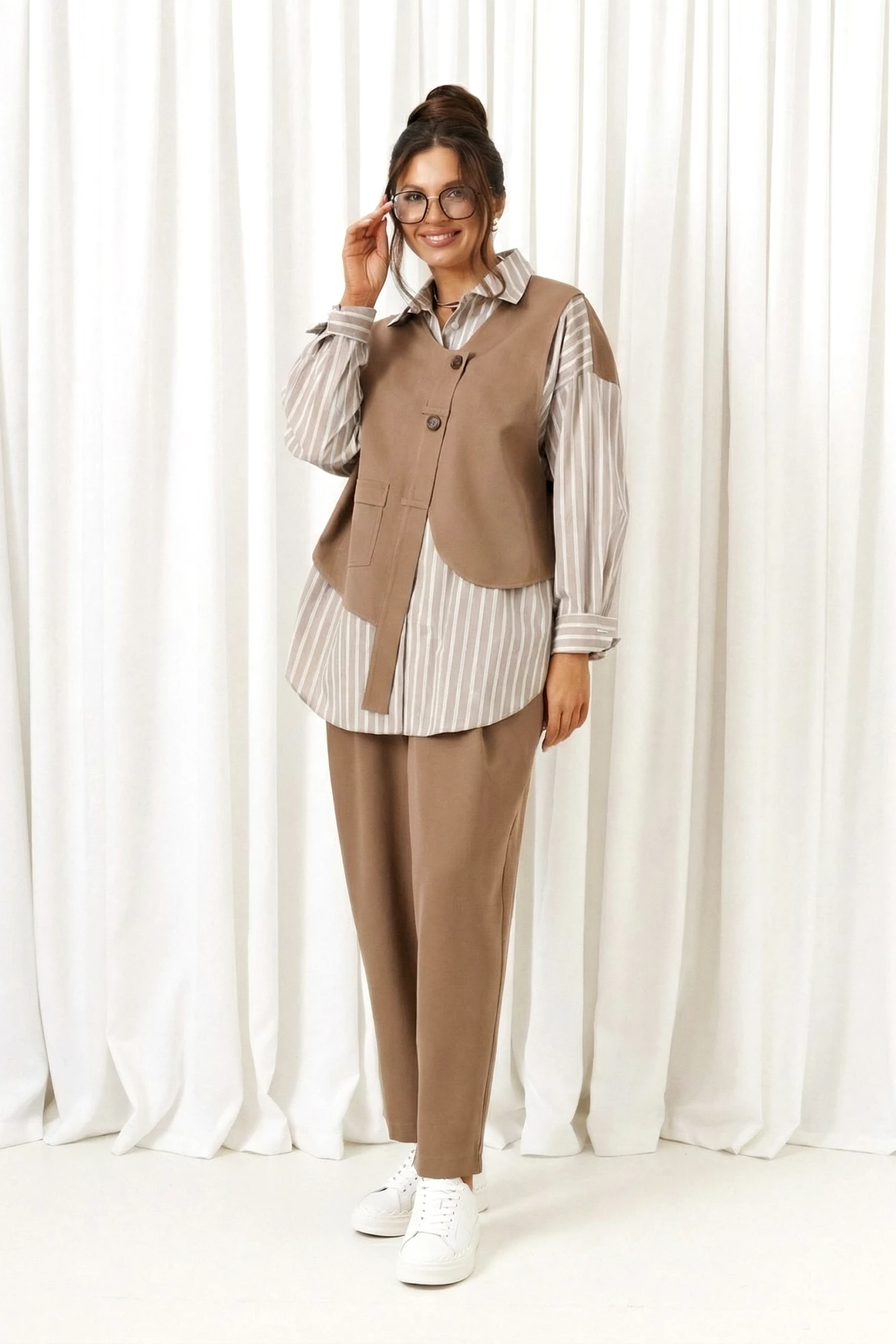 Брючный костюм Beautiful&Free 6439 двойка какао, полоска