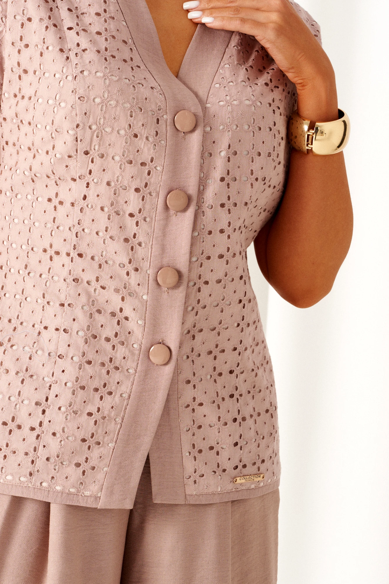 Застежка центральная на петли и декоративные пуговицы.