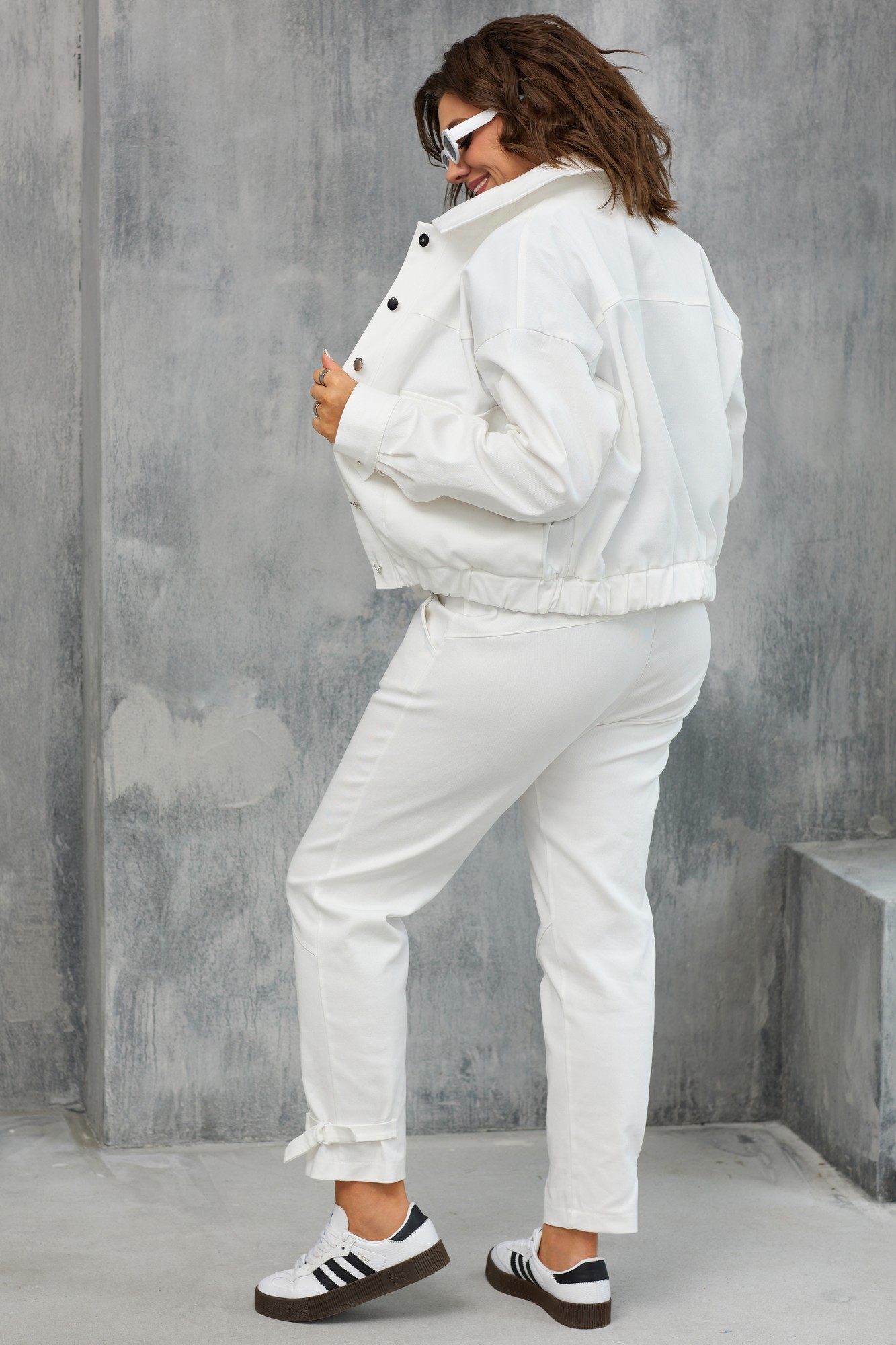 Уникальный комплект, бомбер и брюки – идеальный выбор для стильных женщин, которые ценят комфорт и элегантность. Выполнен из плотного благородного, хлопкового джинса со стрейчем в крупный рубчик, который отлично держит форму, за счёт чего скрывает неровности фигуры. Комплект, в стиле кэжуал, идеально подходит для повседневной носки. Благодаря приятному глазу молочному оттенку он дополнит и освежит любой образ. Бомбер выполнен в стиле оверсайз, нормальной длины. Горловина полукруглой формы, обработана втачным воротником. Функцию застёжки передней части, выполняют стильные металлические пуговицы. Спинка состоит из нескольких разрезных деталей. Рукав втачной, со спущенной линией плеча и притачной манжетой, имеющей застёжку на пуговицу. По переду снизу - притачные объёмные карманы с клапаном и отрезной частью по диагонали. Обтачка низа присборена эластичной резинкой. В комплекте к бомберу - удобные, стильные джинсовые брюки с высокой посадкой. Пояс притачной, на эластичной резинке. По передней части на поясе выполнен «островок», что позволяет визуально скрыть животик. По задней части брюк - кокетка, которая делает посадку брюк идеальной. Передняя часть разрезная. Диагональный срез позволяет визуально «вытянуть» ножку. На нижней части брюк, имеются функциональные надстрочные паты с полукольцами, за счёт которых можно регулировать ширину брюк по низу. Надев этот комплект, Вы будете выглядеть стильно и неповторимо, привлекая восхищённые взгляды окружающих! На фото представлена блуза арт. 4094. При желании бомбер арт. 2013 и брюки арт. 6052 можно приобрести отдельно.