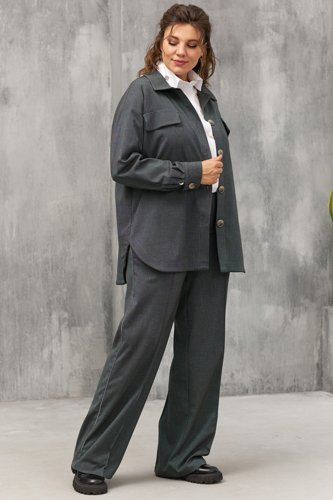 Сет, состоящий из жакета в виде рубашки и брюк палаццо- идеальное воплощение современных тенденций в мире моды. В этом комплекте Вы не только будете выглядеть элегантно, но и чувствовать себя комфортно на протяжении всего дня. Рубашка выполнена в стиле оверсайз. По линии груди декоративные клапаны, по линии низа декорированные кромкой материала. Рукав имеет спущенную пройму, линии низа обработан манжетой с застёжкой на пуговицу Полочка имеет функцию застёжки на пуговицы. Спинка немного длиннее полочки. Низ изделия декорирован кромкой основного материала. Удобные, элегантные брюки палаццо- с высокой талией прекрасно моделируют силуэт, стройнят и визуально удлиняют ножки благодаря застроченным стрелкам и лампасу по боковому шву изделия. В боковых швах карманы хулиганы. Блузу и брюки можно приобрести отдельно. Артикул блузы: 4101. Артикул брюк: 6055.