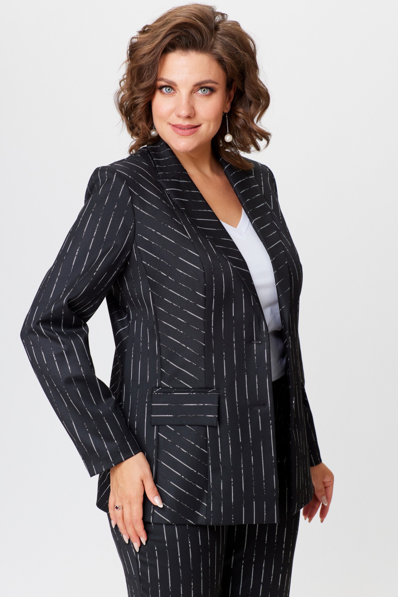Брючный костюм БелЭльСтиль 412+596 черный, полоска