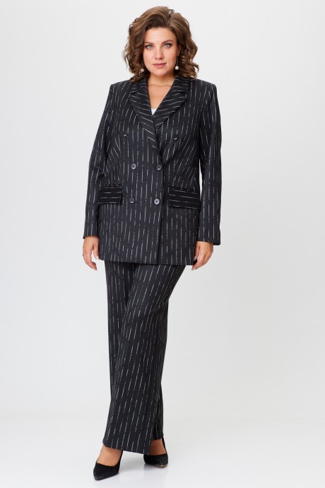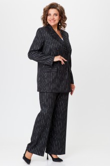 Брючный костюм БелЭльСтиль 848+601 черный, белая полоска