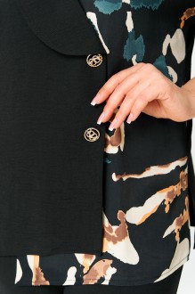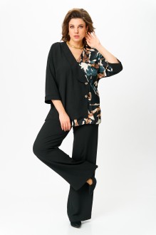 Состав блузона - хлопок 72%, полиэстер 26%, эластан 2% Состав брюк - вискоза 64%, полиэстер 32%, спандекс 4%