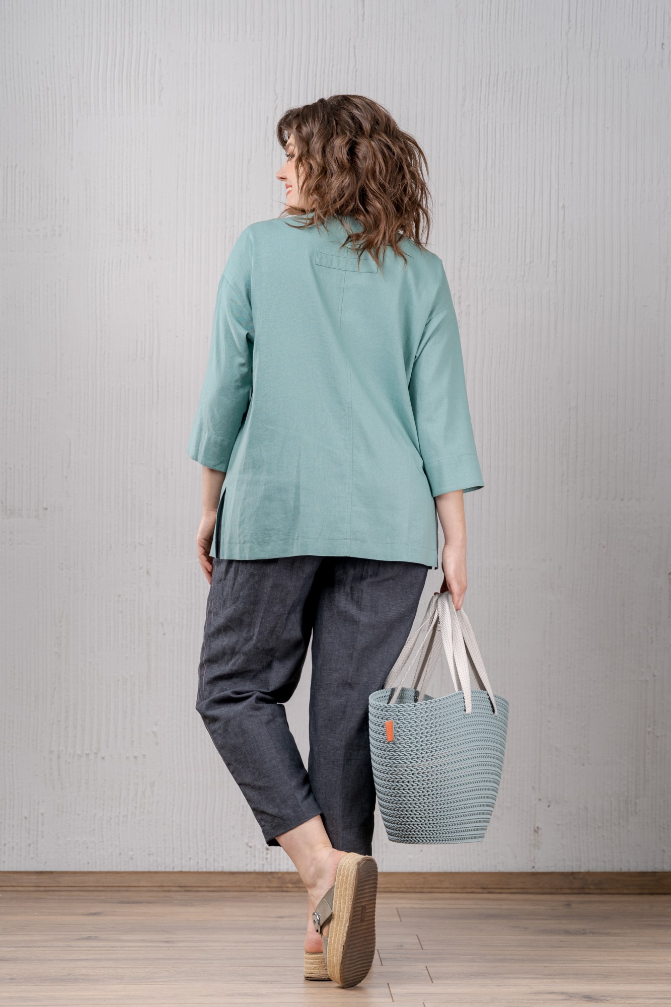 Блуза: Лен-73%, вискоза-27%; Брюки: Лен-85%, вискоза-15%