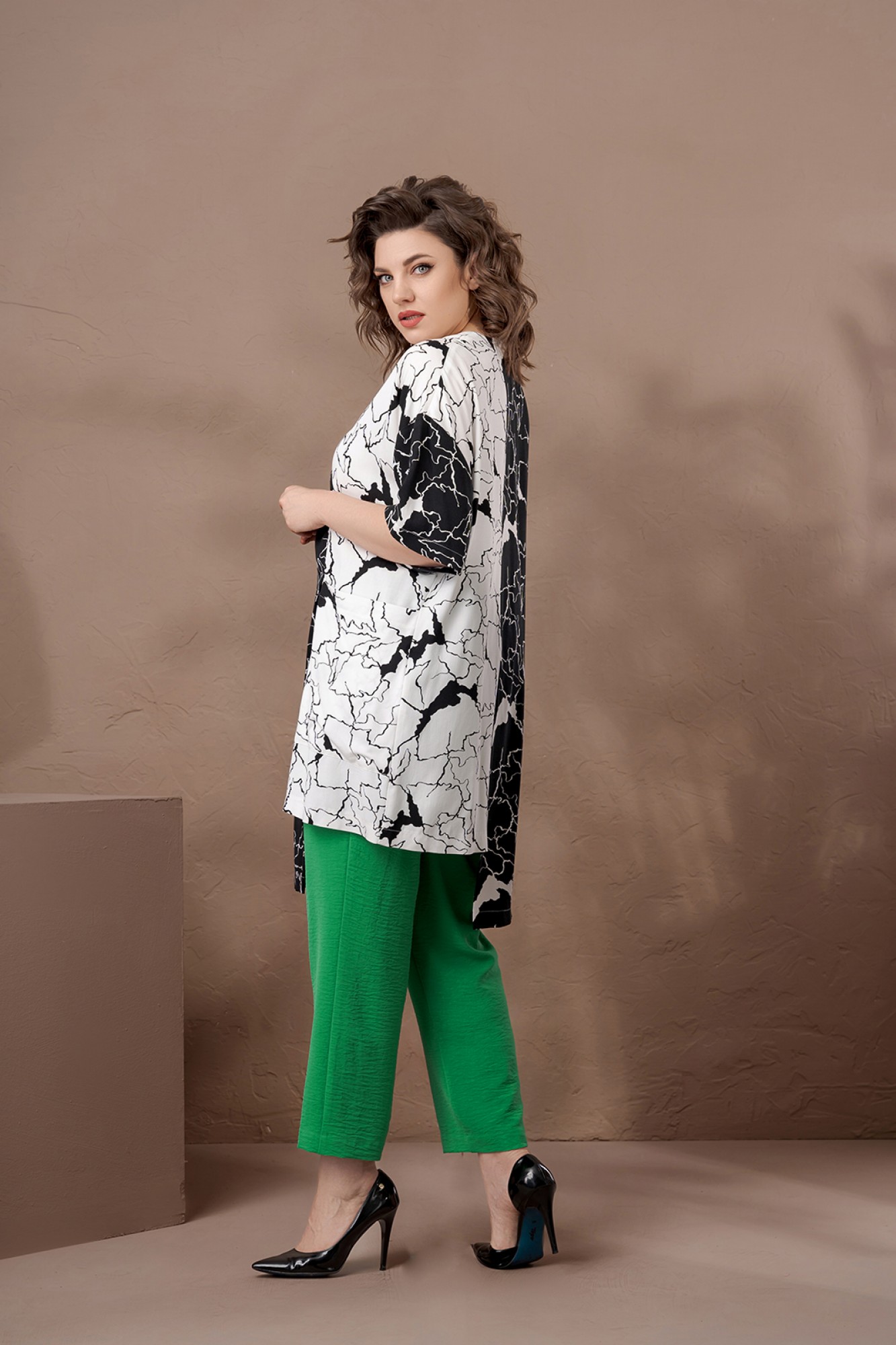 Блуза: вискоза -100%, Брюки: вискоза-21%, ПЭ-77%, спандекс-3%