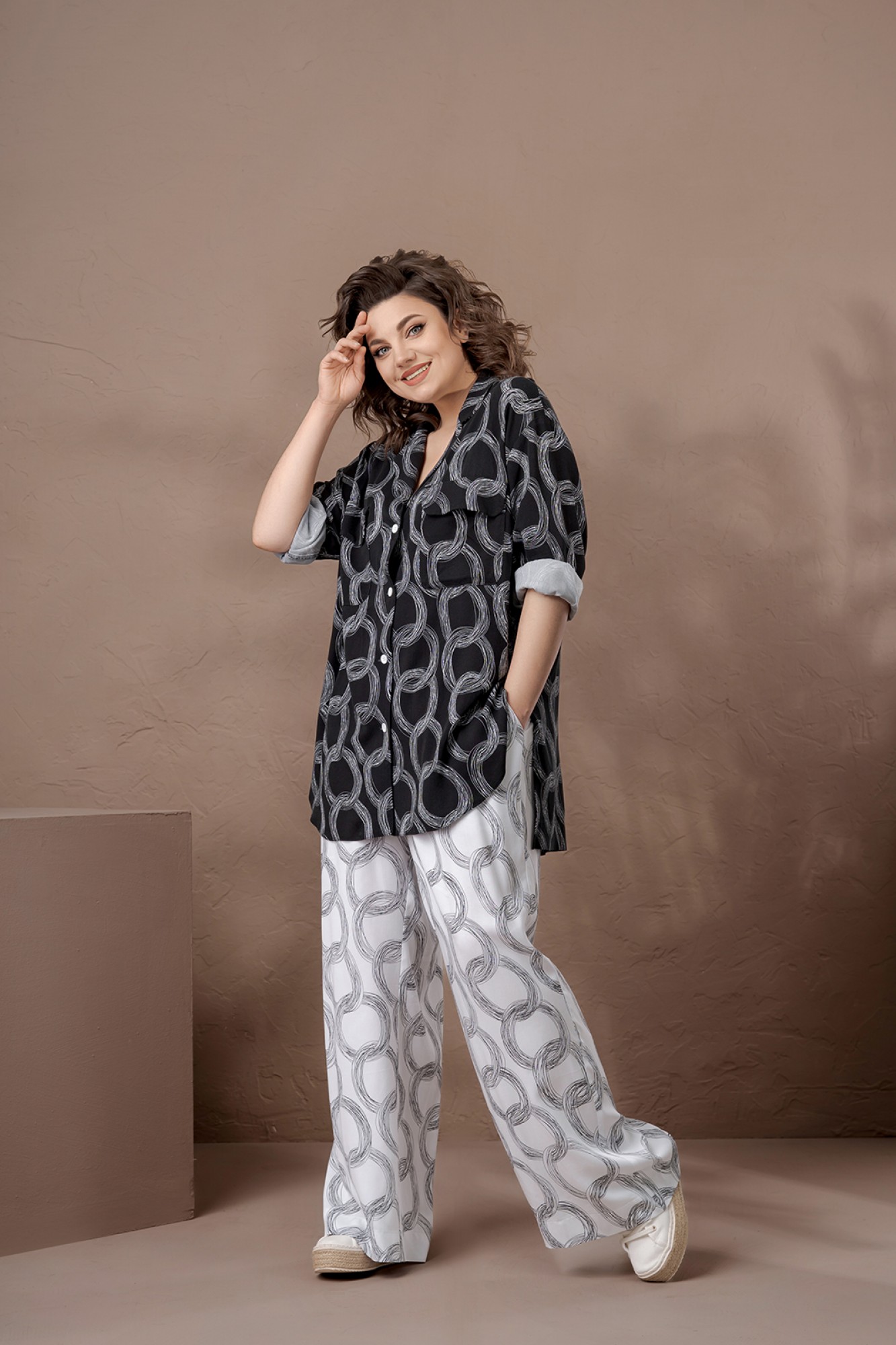 Брючный костюм DEESSES 2209 двойка черный, белый с ID товара 364908