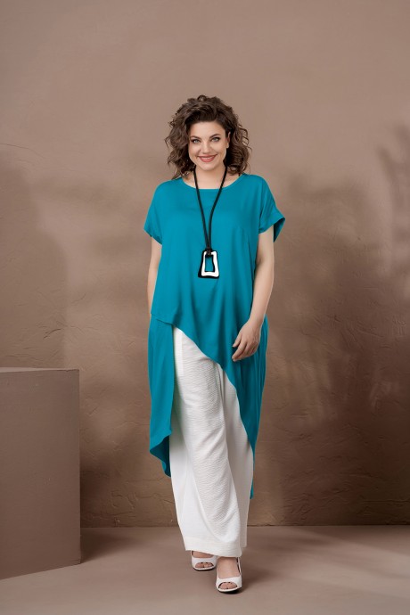 Брючный костюм DEESSES 2215 двойка /4 бирюзовый, белый с ID товара 364916