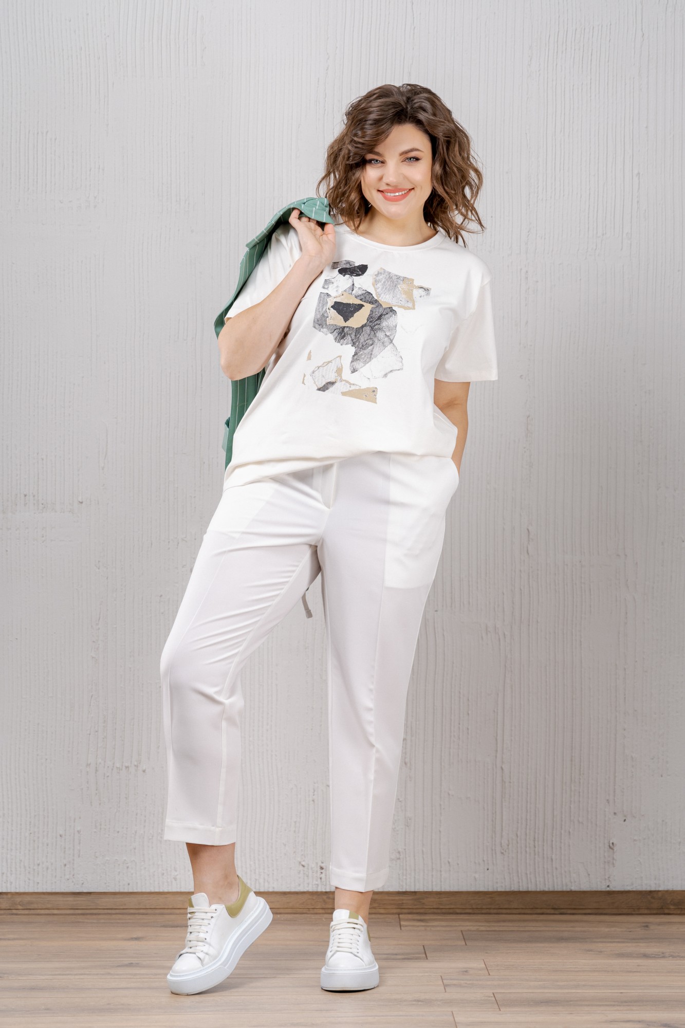 Жакет: ПЭ-64%, вискоза-35%, спандекс-1%; Блуза: Хлопок-97%, спандекс-3%; Брюки: ПЭ-96%, спандекс-4%