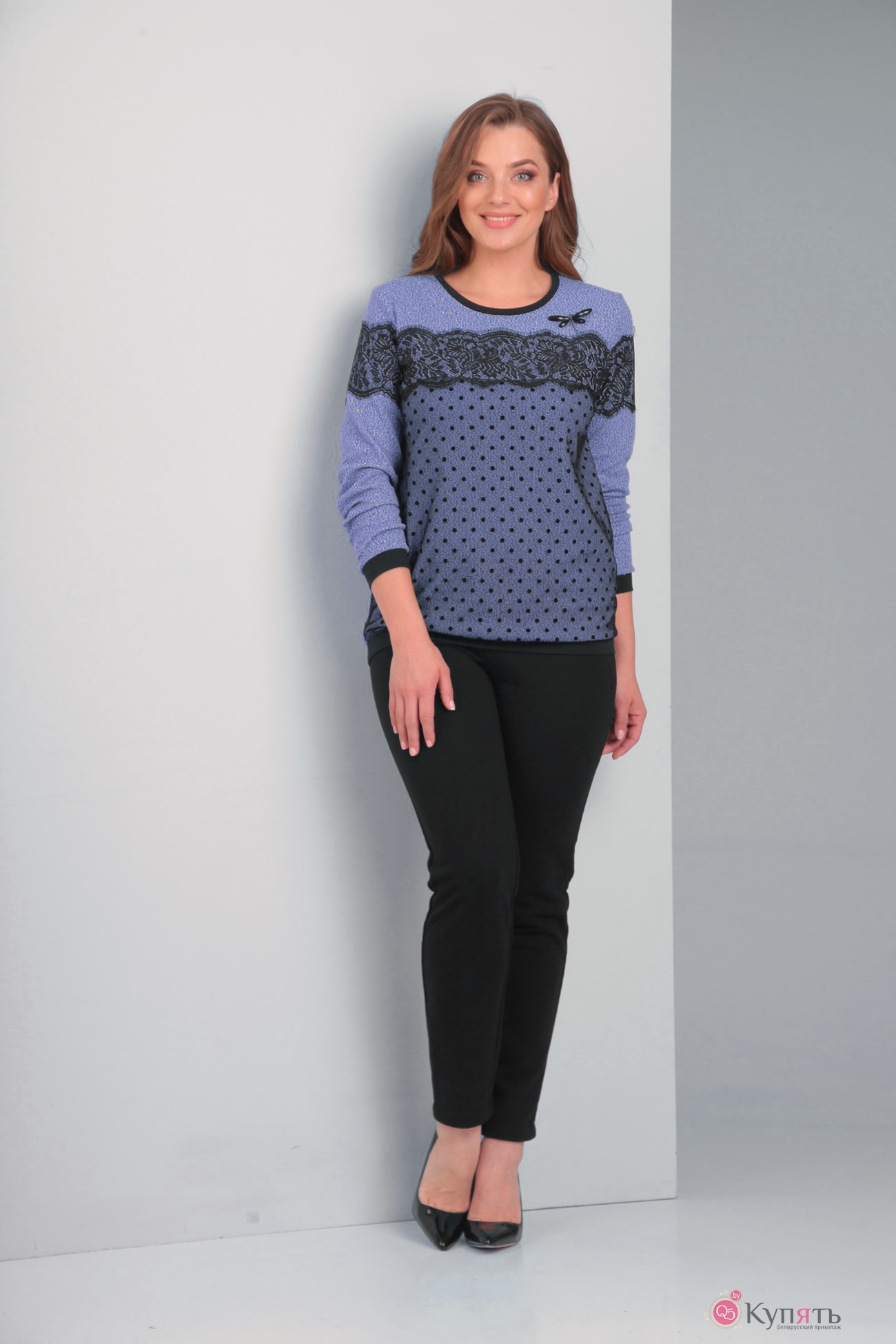 кофта - акрил 87%, вискоза 10%, эластан 3% (с люрексом, ткань с блеском), брюки - 100% хлопок