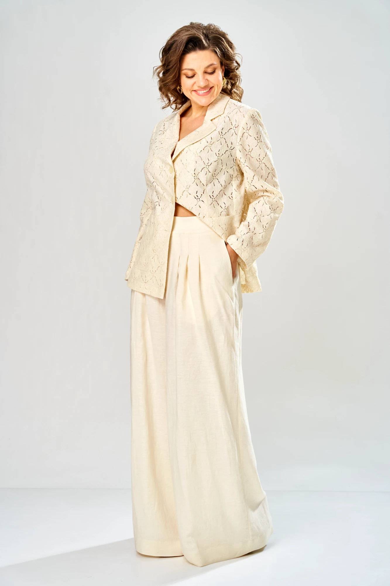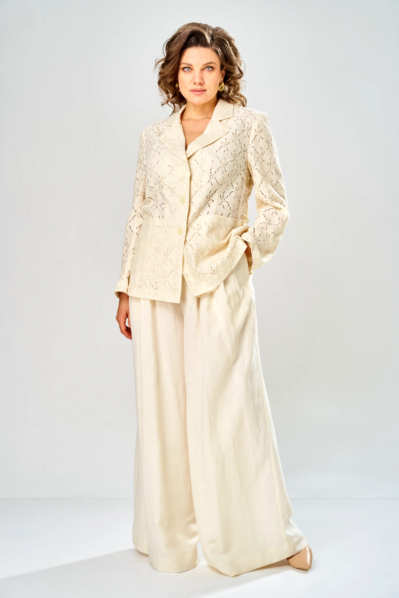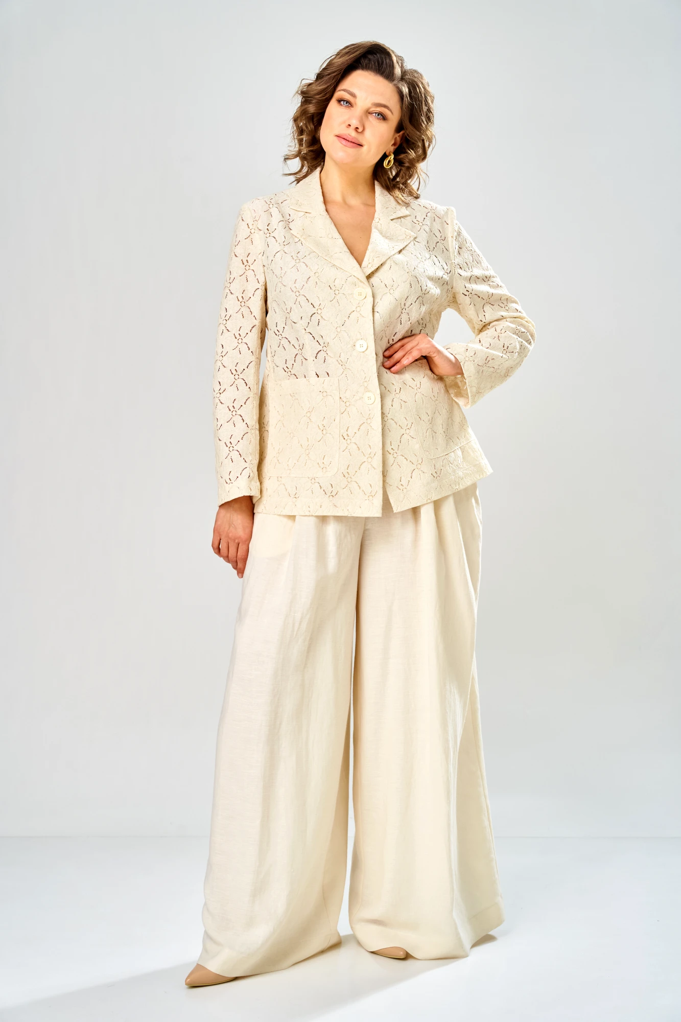 Жакет: вискоза 50%, хлопок 50%. Брюки: лен 53%, вискоза 47%