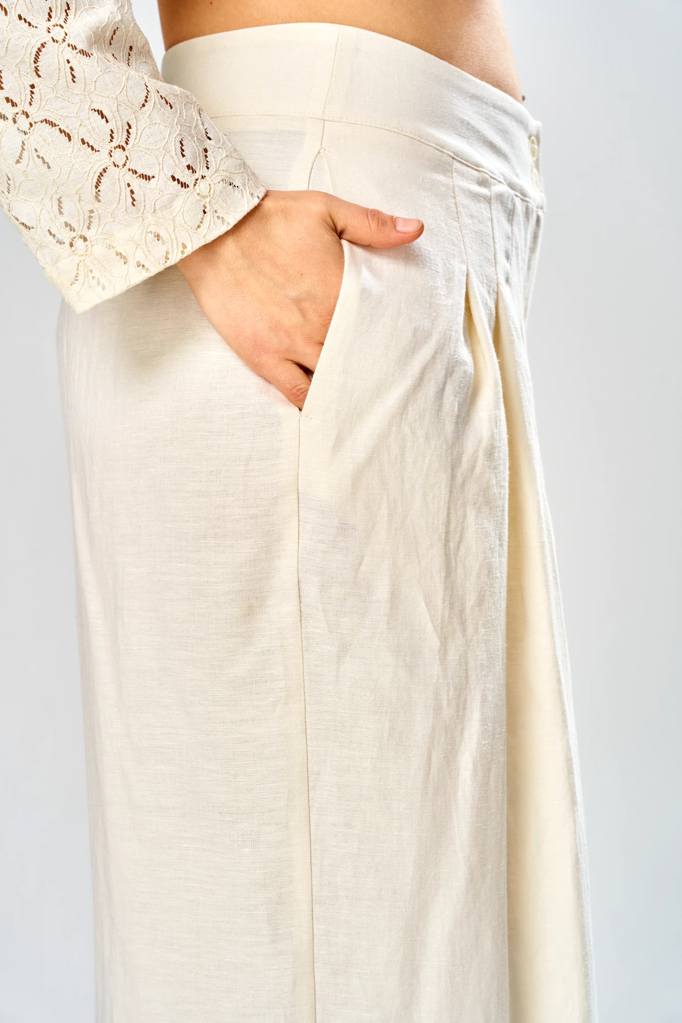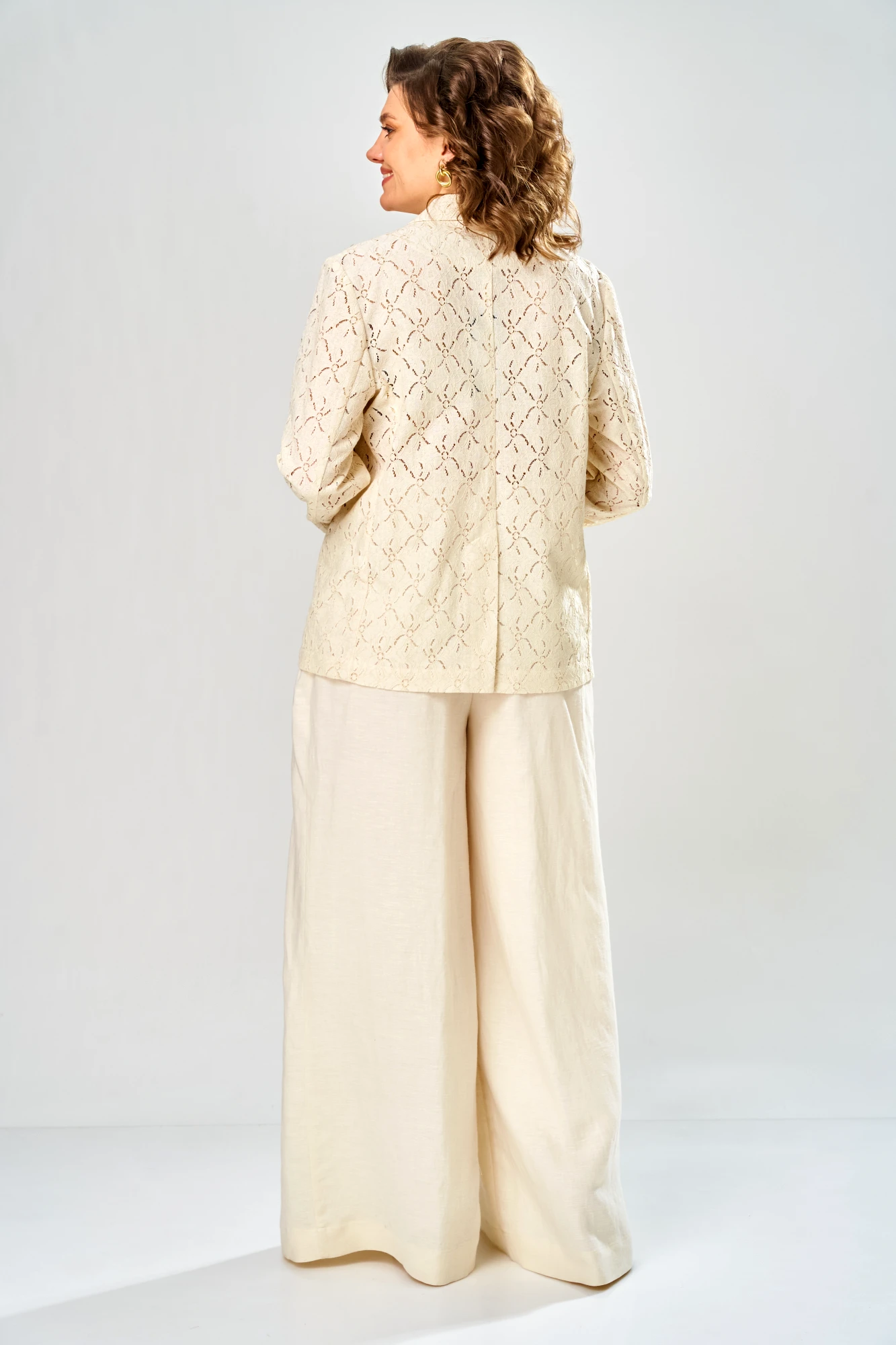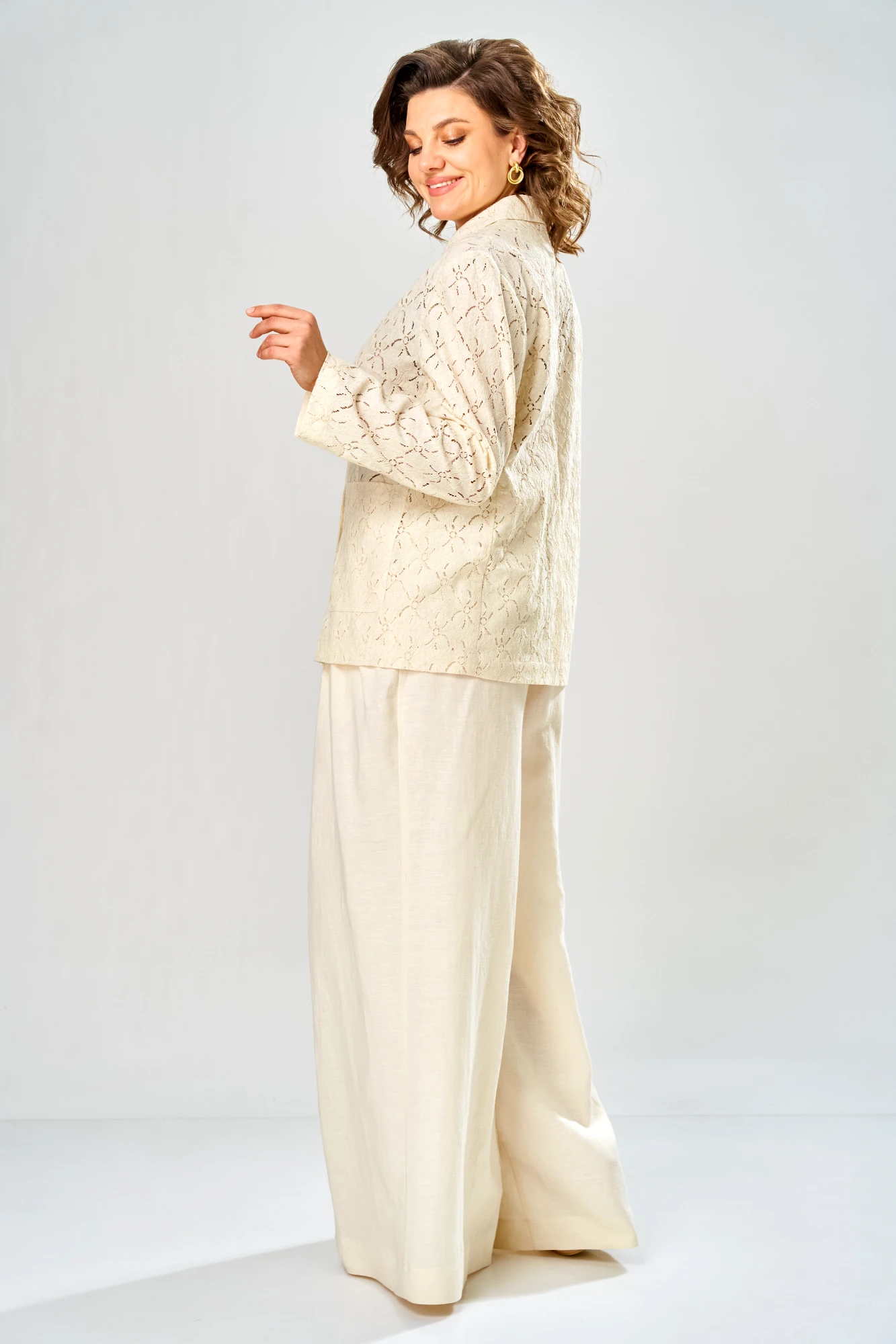 Жакет: вискоза 50%, хлопок 50%. Брюки: лен 53%, вискоза 47%