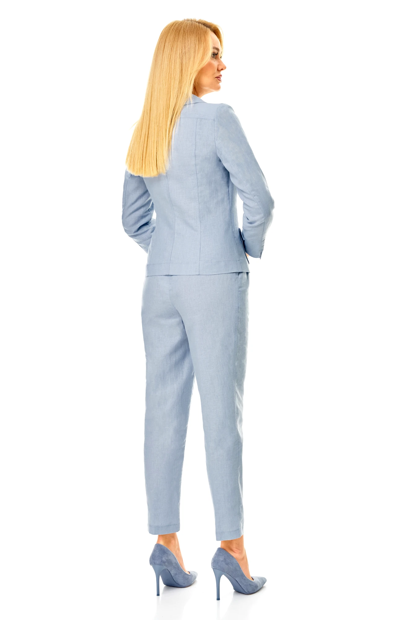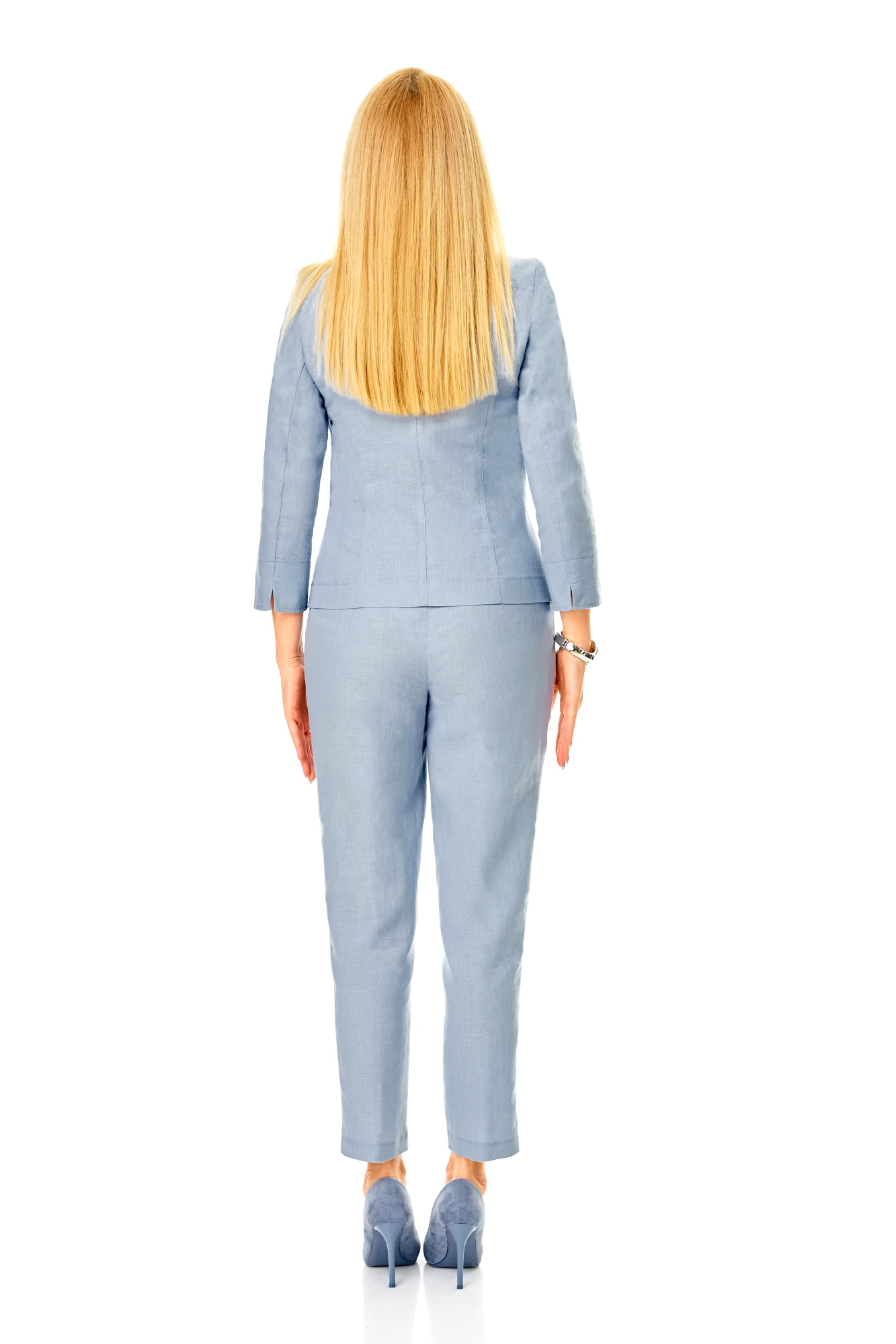 Жакет – лен 53%, вискоза 47%. Брюки – лен 53%, вискоза 47%