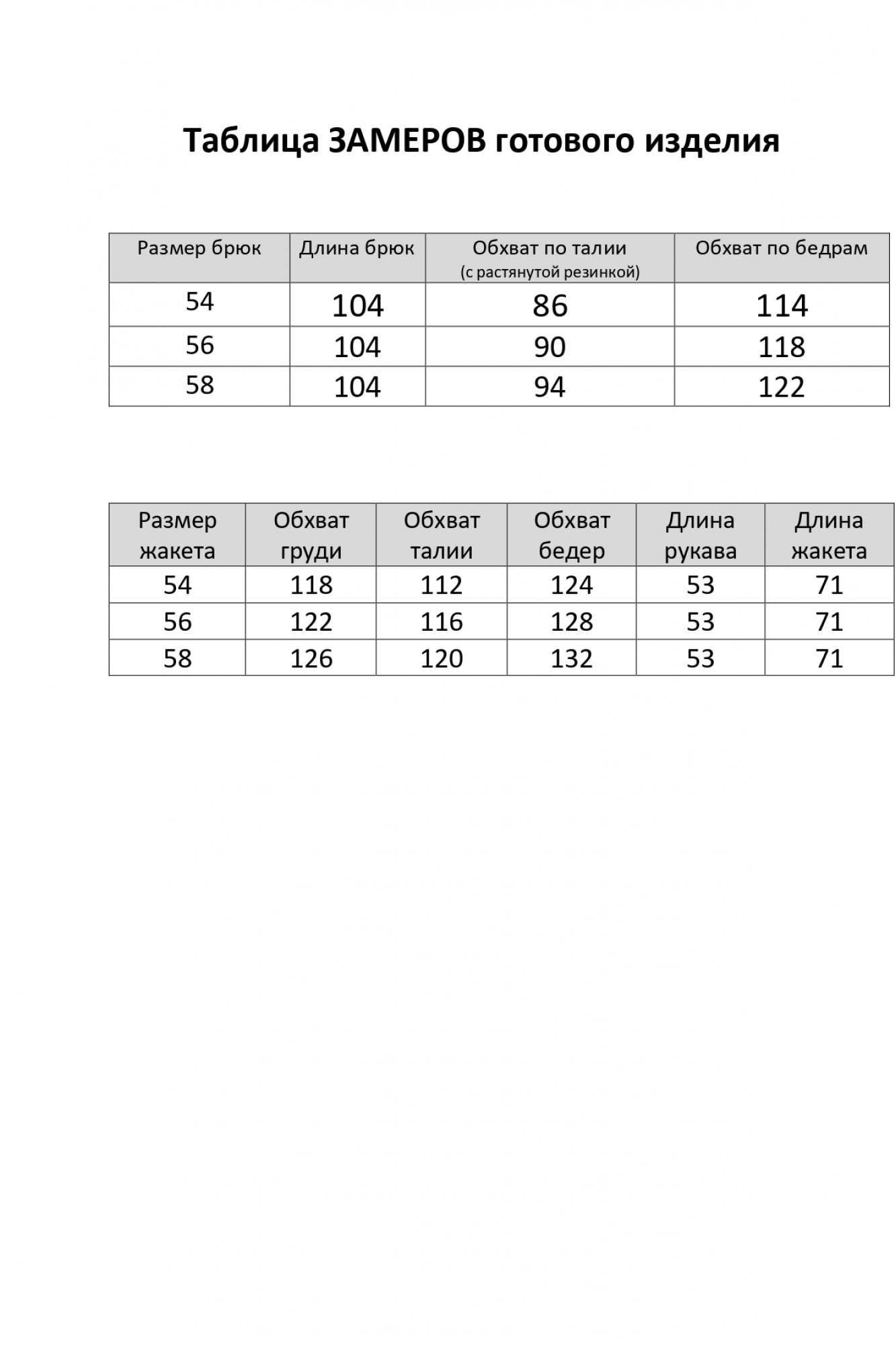 56 р-р Длина по спинке жакет 70 см. Длина рукава 48 см. Длина брюк 104 см.