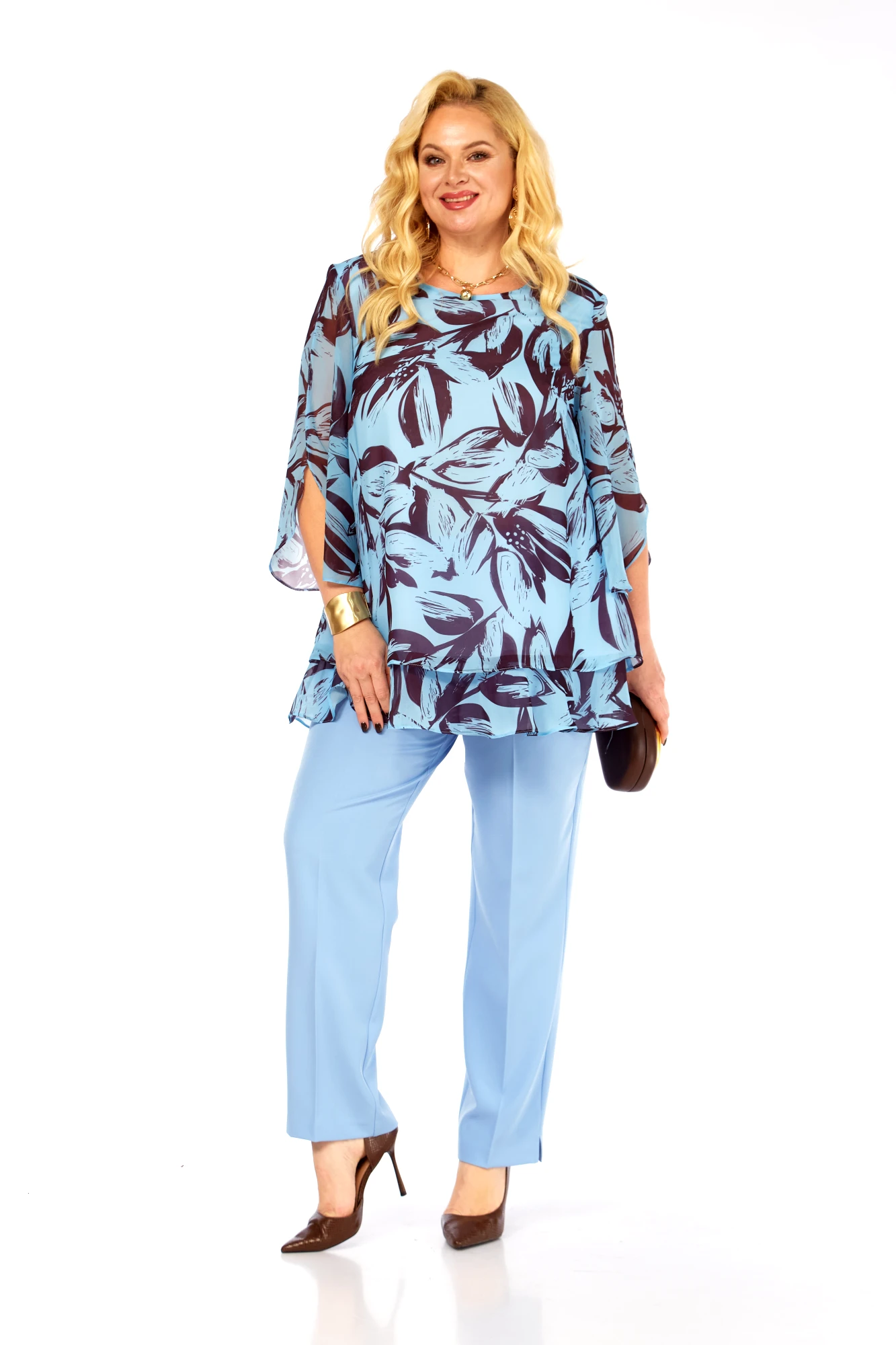 Брючный костюм Элль-Стиль 2213 /12 голубой, кофе