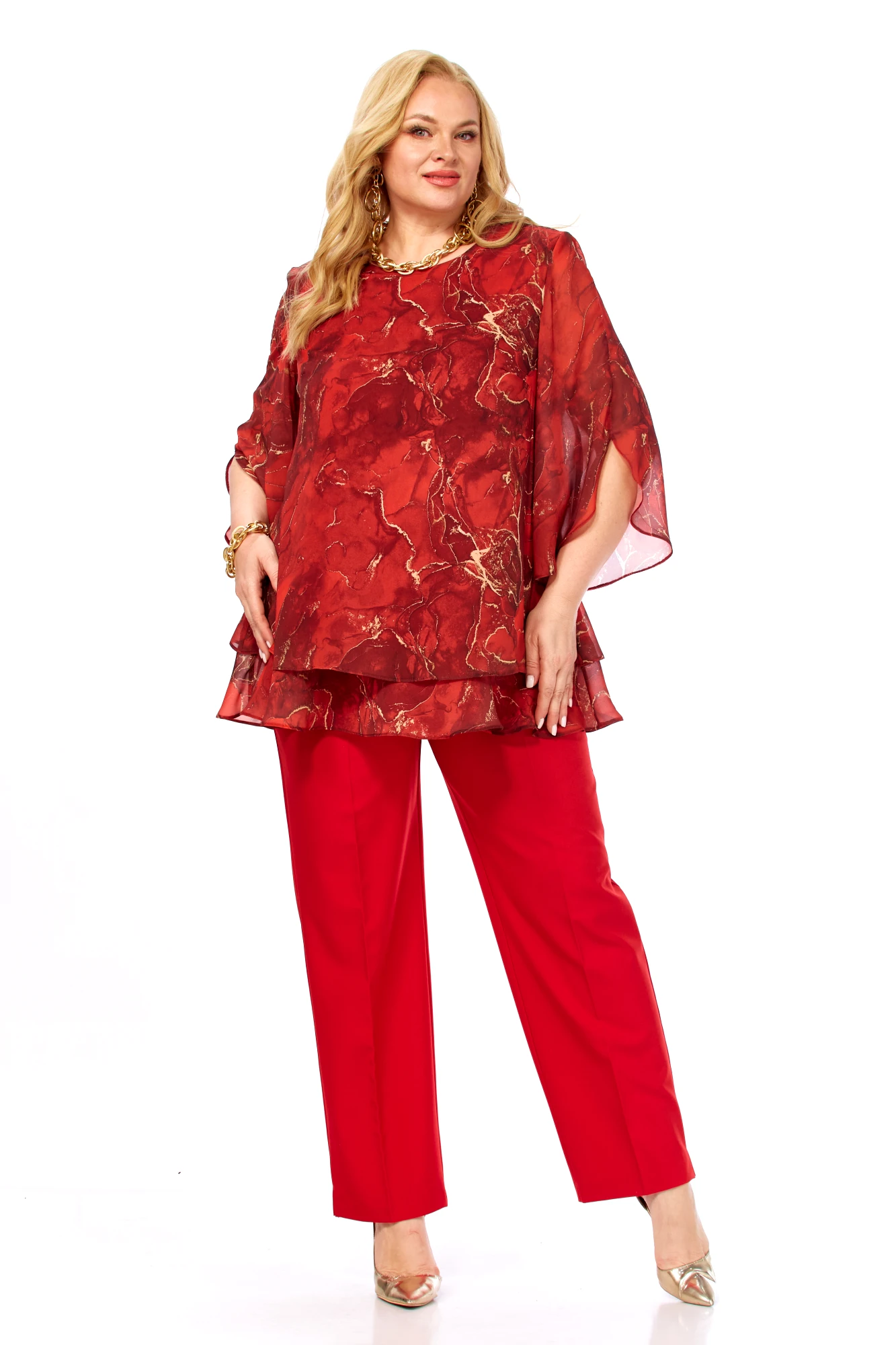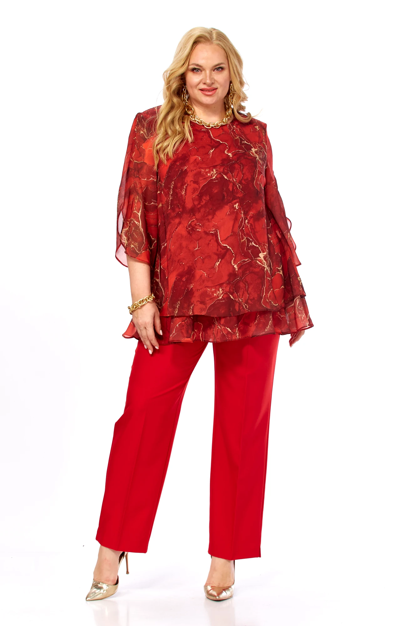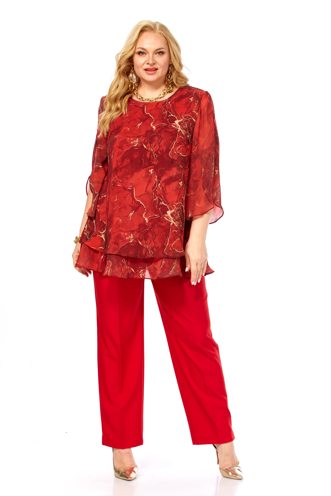Брючный костюм Элль-Стиль 2213 /16 красный мрамор