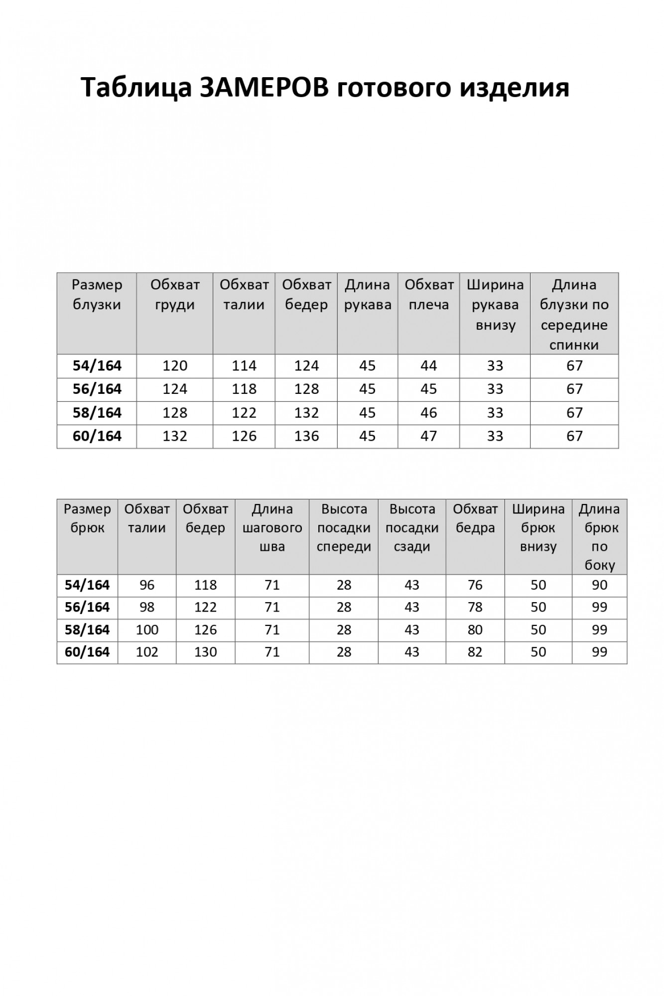 Блузка – вискоза 50%, полиэстер 50%. Брюки - вискоза 50% полиэстер 50%