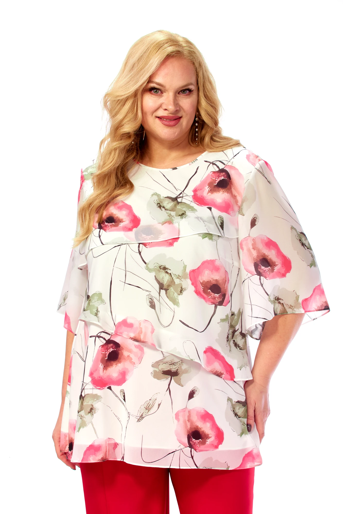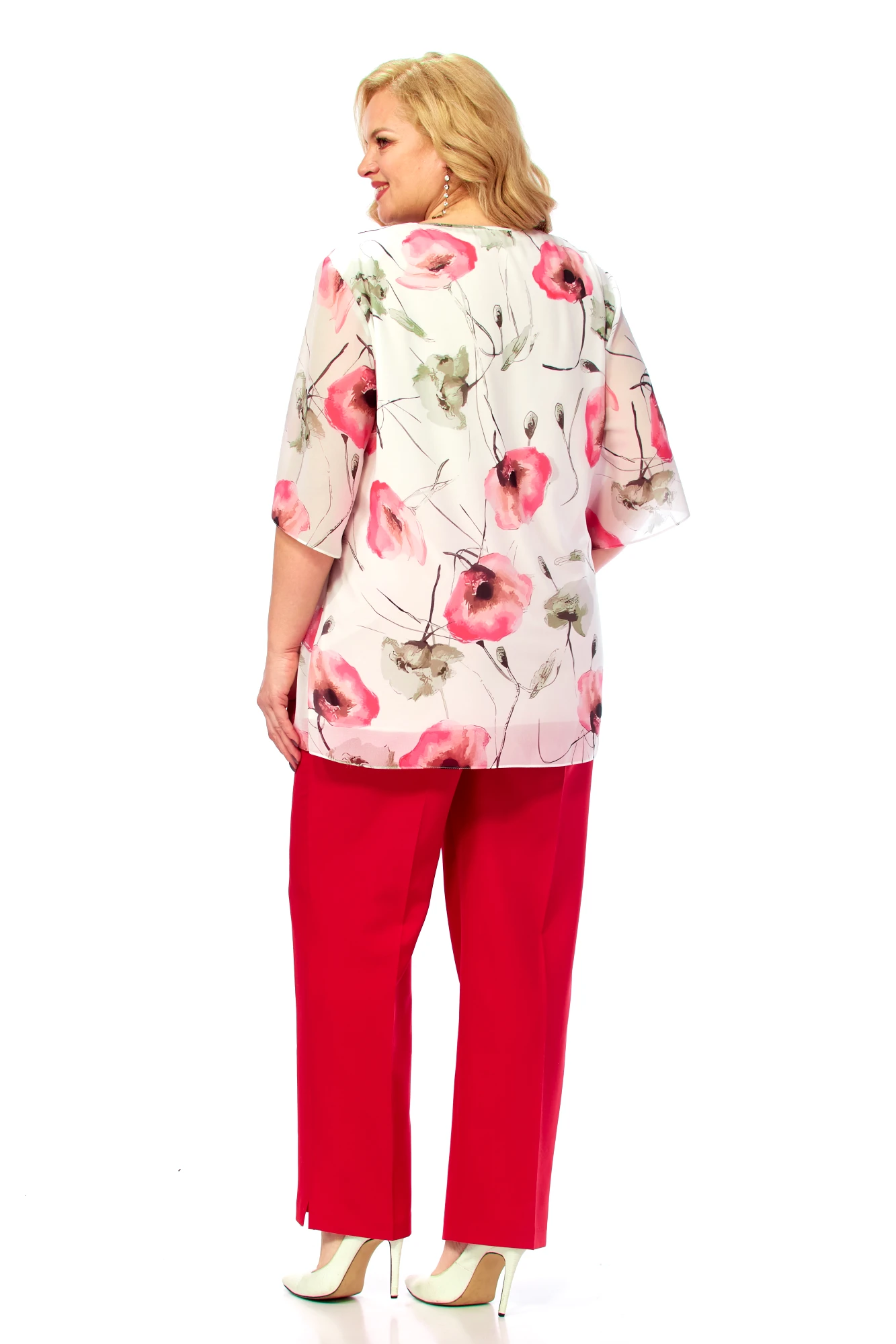 Брючный костюм Элль-Стиль 2465 белый, красный