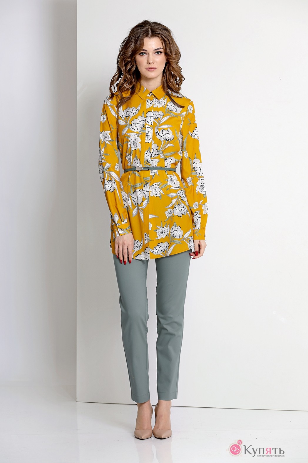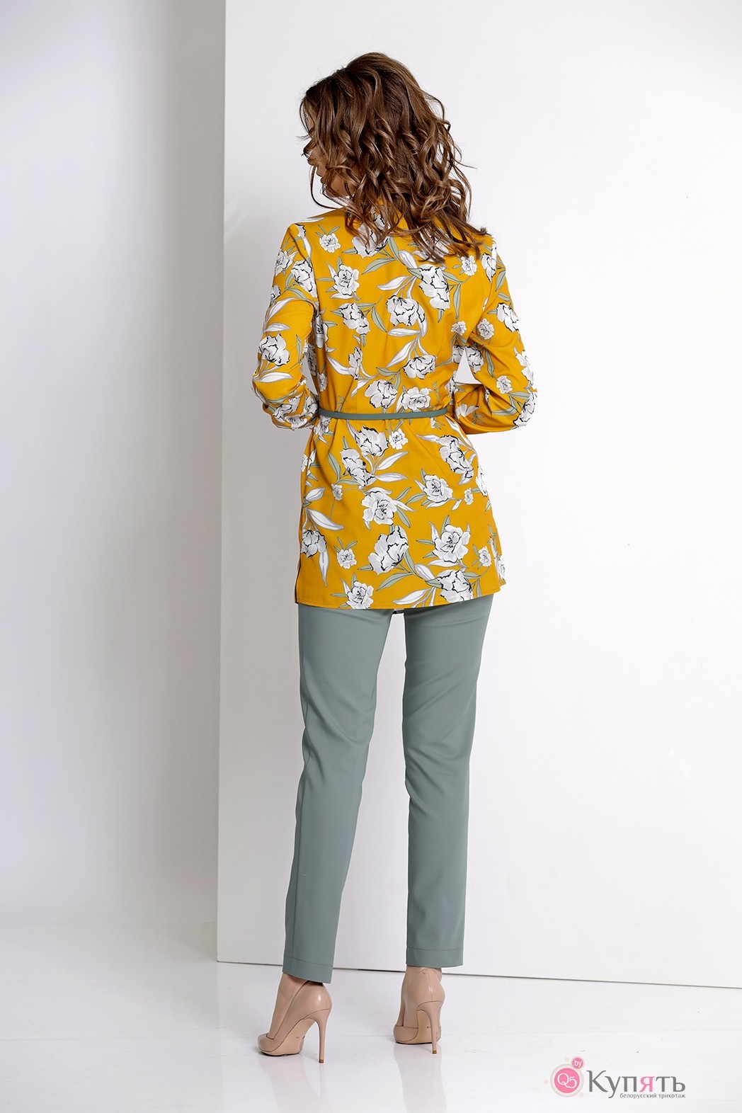 блузка: ПЭ - 100%; брюки: хлопок - 62%, ПА - 35%, ПУ - 3%