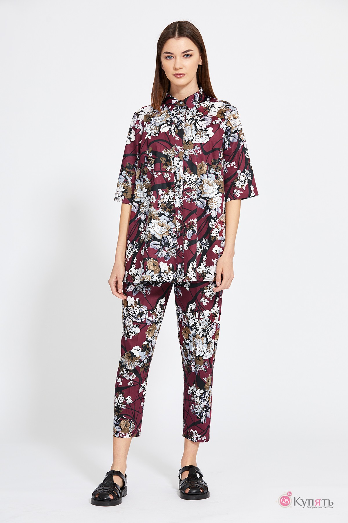 Брючный костюм EOLA 2053 марсала с принтом с ID товара 284031