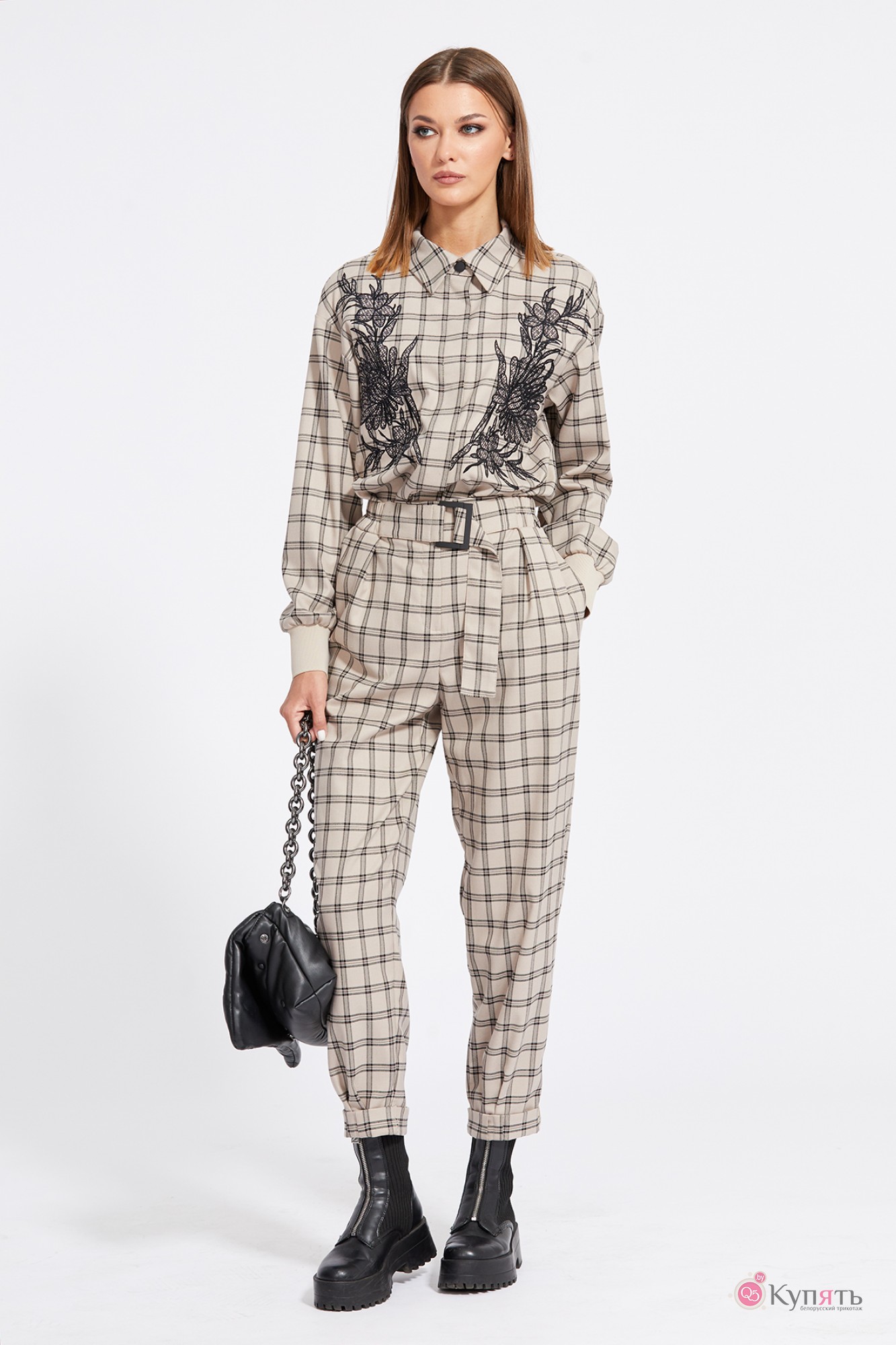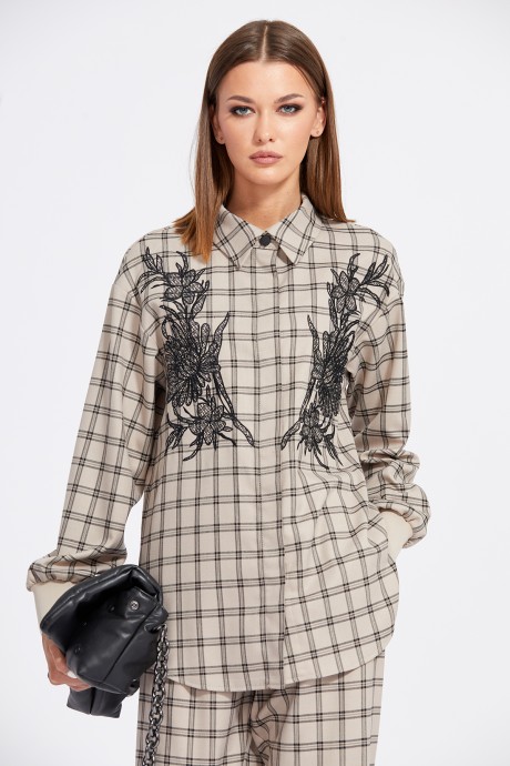 Брючный костюм EOLA 2110 клетка темно- бежевая с вышивкой с ID товара 306057