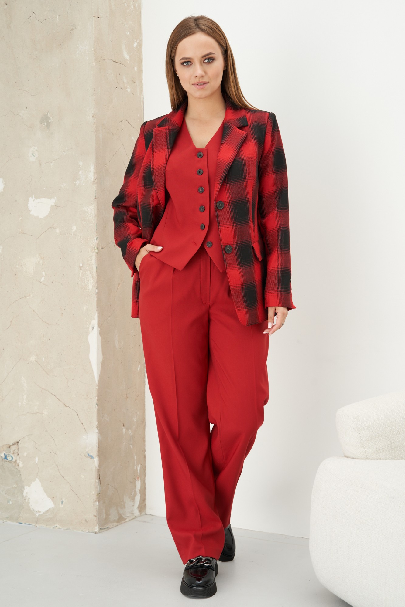 Брючный костюм Fantazia Mod 4566 тройка красный, клетка с ID товара 371086