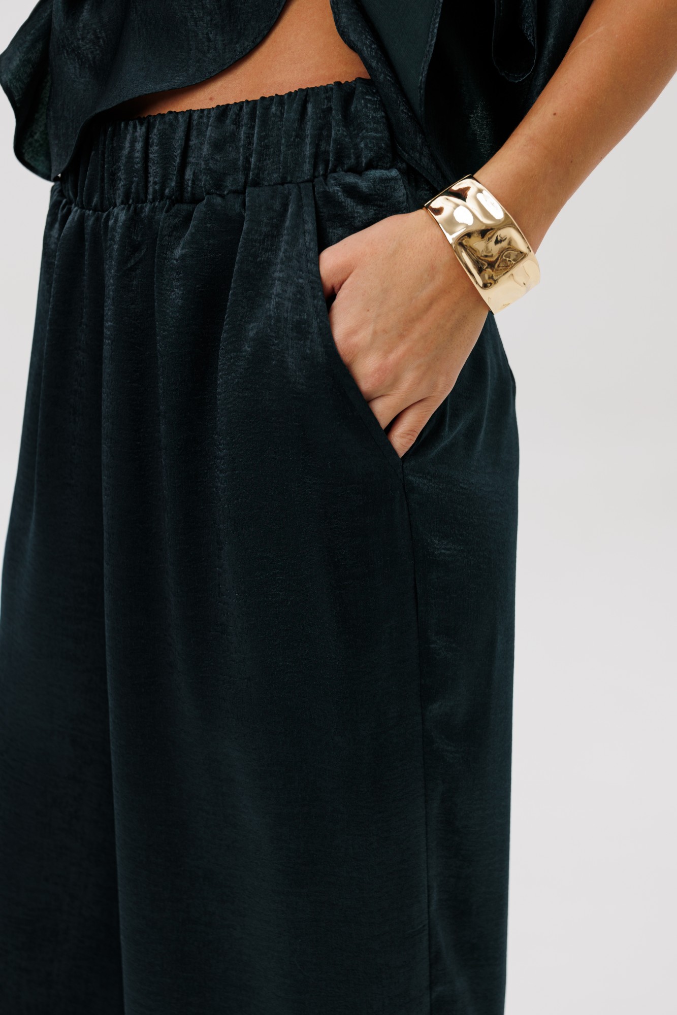 Роскошный брючный комплект из высококачественного атласа — это готовый образ для особых случаев и стильных выходов. Свободная блуза beautifully драпируется, мягко играет на свету и позволяет носить её как в расслабленном варианте, так и подчёркивая талию поясом. Широкие брюки на комфортной резинке создают эффект удлинённых ног и дарят полную свободу движений. Современная элегантность, которая всегда смотрится дорого и effortlessly chic.