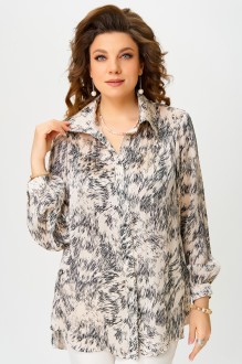Женская блузка ""Хариса"" выполнена из текстильной ткани. Блузка прямого силуэта. Воротник отложной рубашечного типа на стойке, застежка на петли и пуговицы, планка отрезная. По спинке блузки кокетка, рукав в блузке втачной, по низку рукава манжет с застежкой на петлю и пуговицы. По полочке сборка и отрезная кокетка. Низ изделия обработан швом в подгибку с открытым срезом. В боковых швах блузки - разрезы.